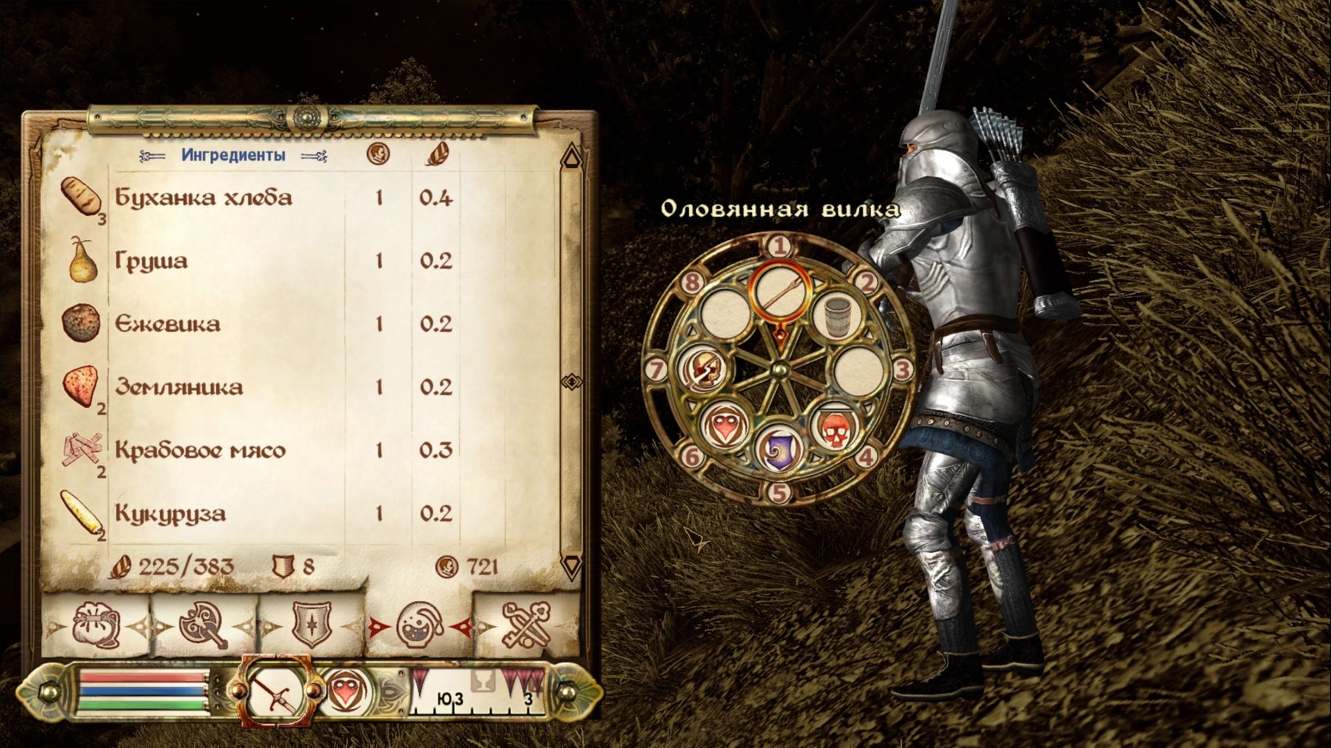 - Голод влияет на строчку здоровья, в то время как жажда и усталость в равной степени формируют штрафы для строчек магии и стамины. Мною, эксперементальным путем, было выведено, что именно такое акцентирование лучше всего ощущается в ходе игры.