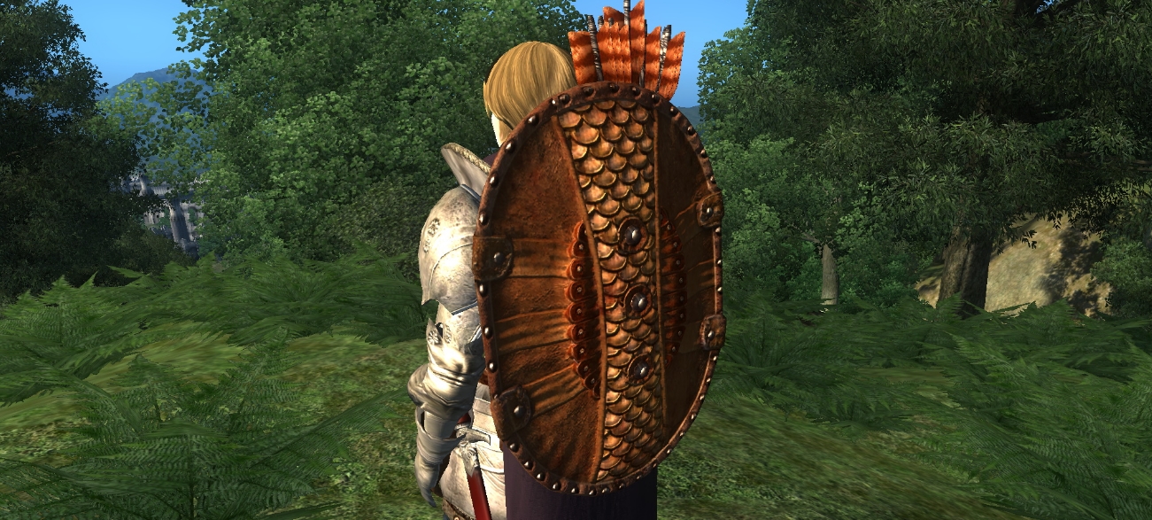 Щит на Спину это "новая версия" мода "Tycho's Shield" но только переписанная с нуля, без длинных скриптов, оптимизированная не ломать игру. Как исходит из названия, позволяет нацепить щит на спину, когда вы убираете оружие в ножны.