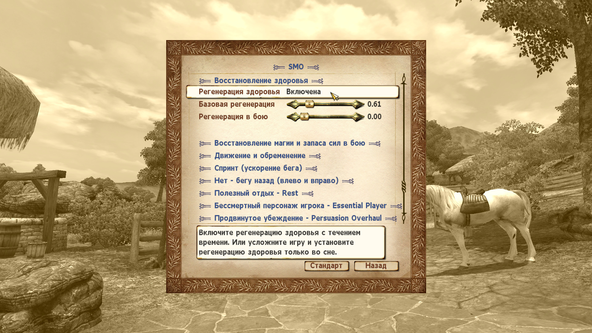 В качестве альтернативы, если вы хотите, чтобы игра была сложнее, вы можете не включать восстановление, а наоборот, дополнительно отключить восстановление здоровья при ожидании. В этом случае, только сон сможет восстановить ваше здоровье.