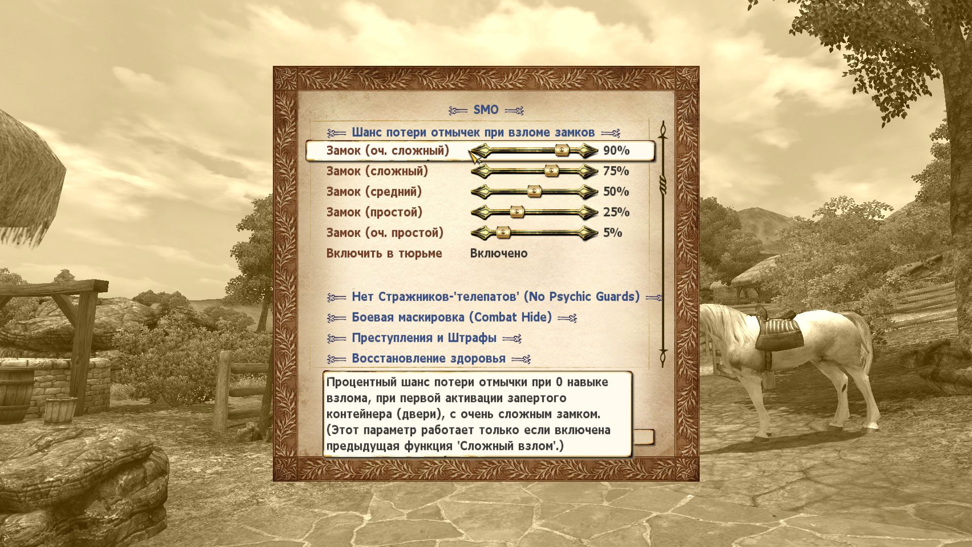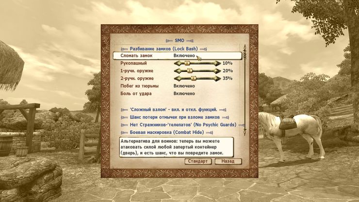 Здесь не так уж много изменений, но это коллекция модов, которые настраивают и улучшают геймплей oblivion, соблюдая при этом ванильный стиль - от искусственного интеллекта до преступлений и штрафов, скрытности и взлома, и многого другого.