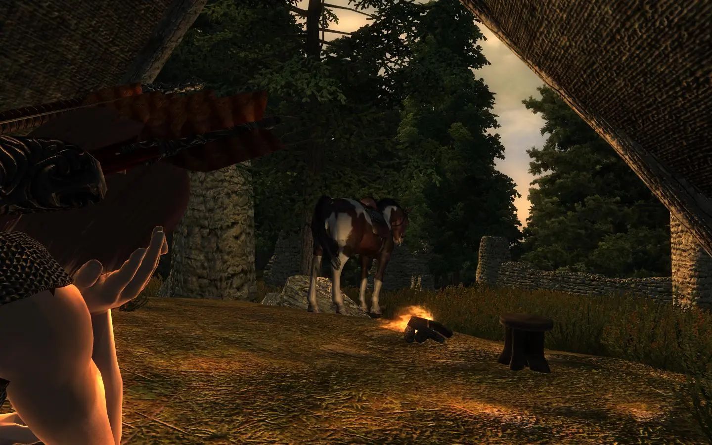 Этот мод представляет собой компиляцию и улучшение нескольких модов для кемпинга и идеально подходит для охотников и тех, кто хочет спать на природе Сиродила. Он включает в себя спальный мешок, костер, палатку, табурет и мешок. Он содержит исправления ошибок и доработки оригинальных модов, а также новые функции. Цель — достижение реализма, поэтому предметы максимально простые, и нет магически созданных домов, заполненных произведениями искусства и сундуками.