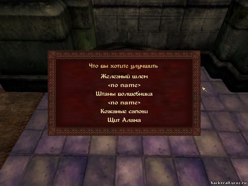 Теперь вы можете улучшить свою броню. Улучшаются защитные свойства брони и базовая прочность. Если вы чего-то не надели, в меню вместо имени вещи будет . Такой путь улучшения сделан потому, что ваш персонаж по идее привыкает к броне и он с каждым днем все лучше знает, как правильно ее использовать!