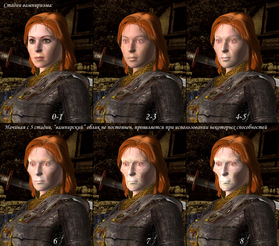 Однако, у каждой стадии есть свои требования, вы должны быть определенного уровня, провести определенное количество дней в облике вампира, и, конечно, придерживаться здоровой диеты. Если вы удовлетворяете всем требованиям - вы немедленно перейдете на следующую стадию вампиризма. Однако, имейте в виду - это достаточно медленный процесс. Вам потребуется не менее 74 вампирских дней, чтобы добраться до последней стадии... Впрочем, если вас это ужасно раздражает, это ограничение можно обойти.
