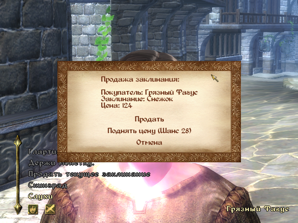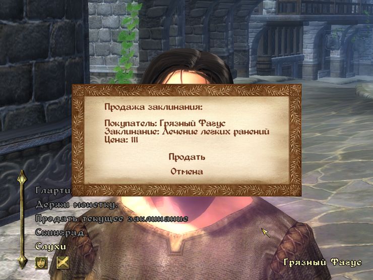 Мод позволяет вам продавать заклинания. Да, совершенно верно, теперь вы можете продать то заклинание, которое вам совсем не нужно! Для этого выберите его в меню заклинаний и поговорите с любым НПС (кроме стражников) о продаже. Цена зависит от кол-ва эфектов в заклинании и количества магии, которое оно затрачивает при касте.