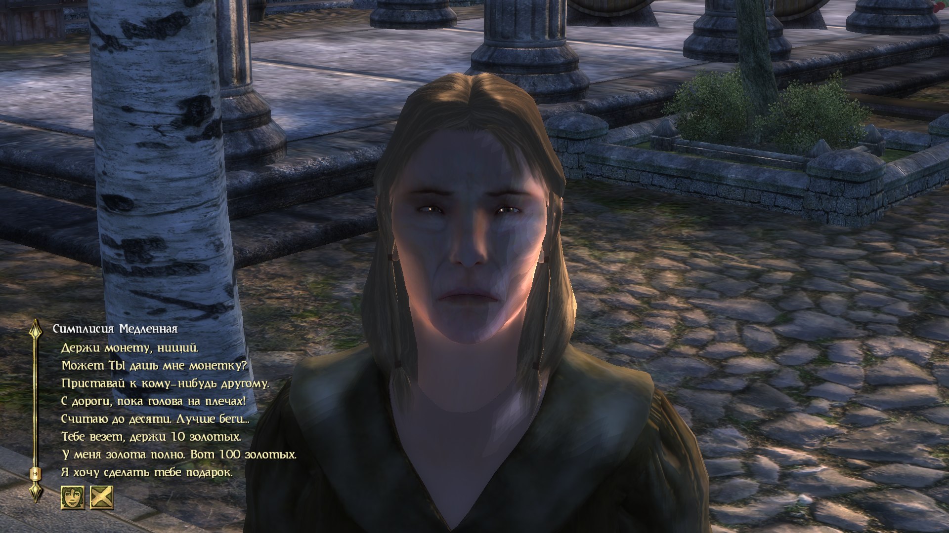 Нищим можно теперь дать больше денег, или ответить грубо. В зависимости от этого будет и реакция. Максимальная сумма, которую вы можете дать нищему, чтобы полюбоваться его ужасным замешательством - 100 золотых. Вы так же можете отогнать нищего или даже ограбить! Заберите у него последние копейки. А если у него нет золота, предложите ему заполнить ваш камень душ собой. Только пятки засверкают....