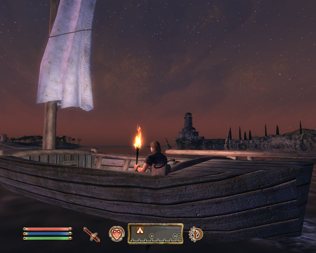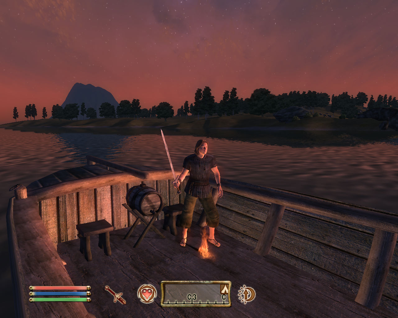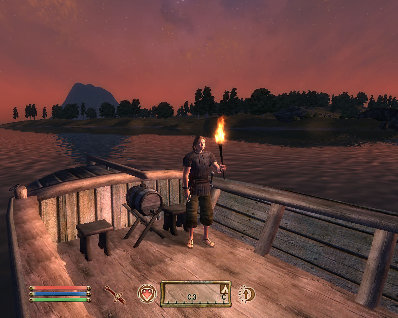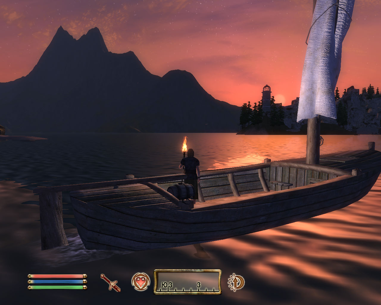 Да, чуть не забыл, если Вы обнажили оружие и факел был у Вас в руке, то он падает на землю и горит там где упал. Убираете меч в ножны и факел возвращается в руку.
