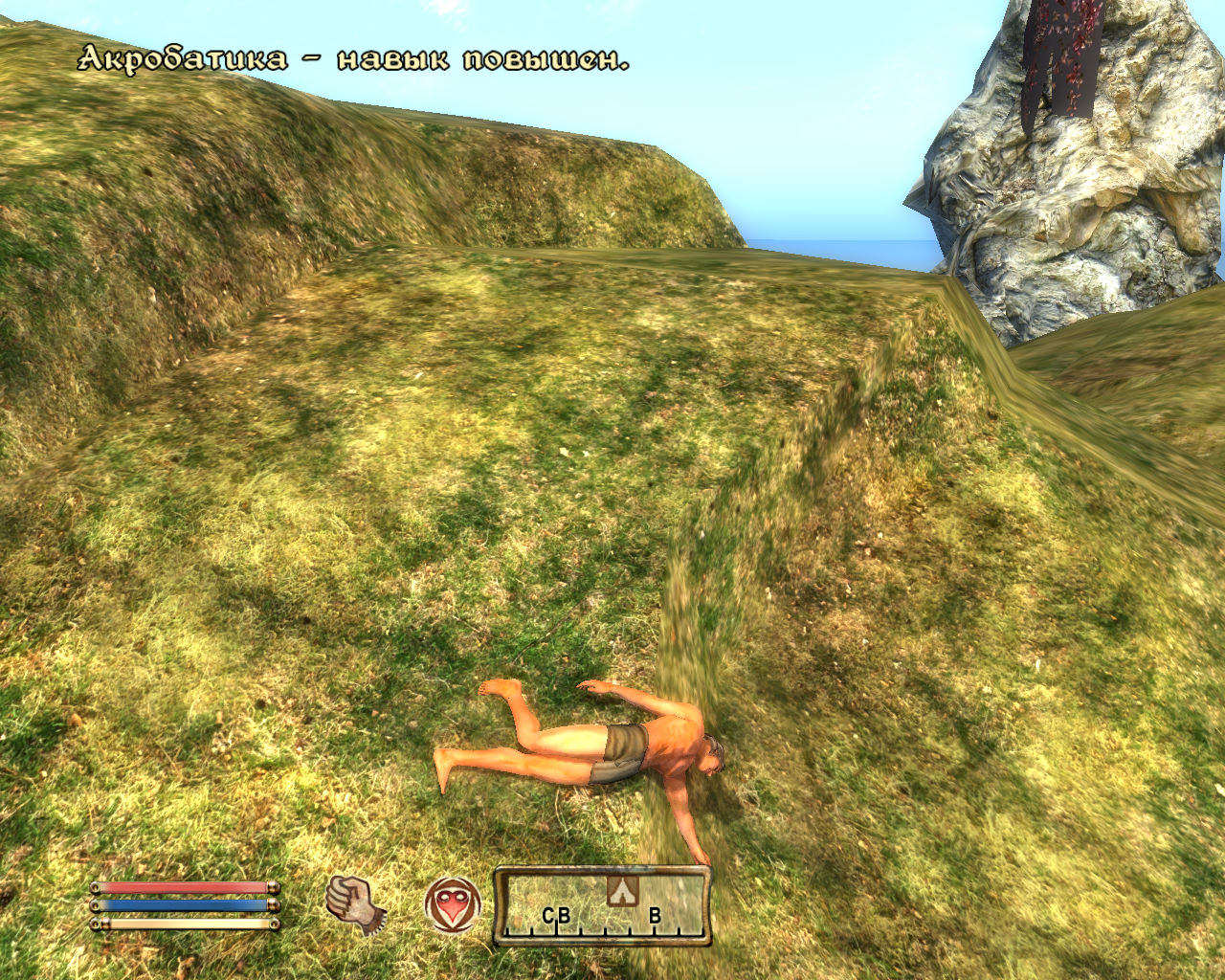 Особенности: если Ваш ГГ умер в лаве, выскочит окно загрузки сохранений, то же самое если умер в воде.