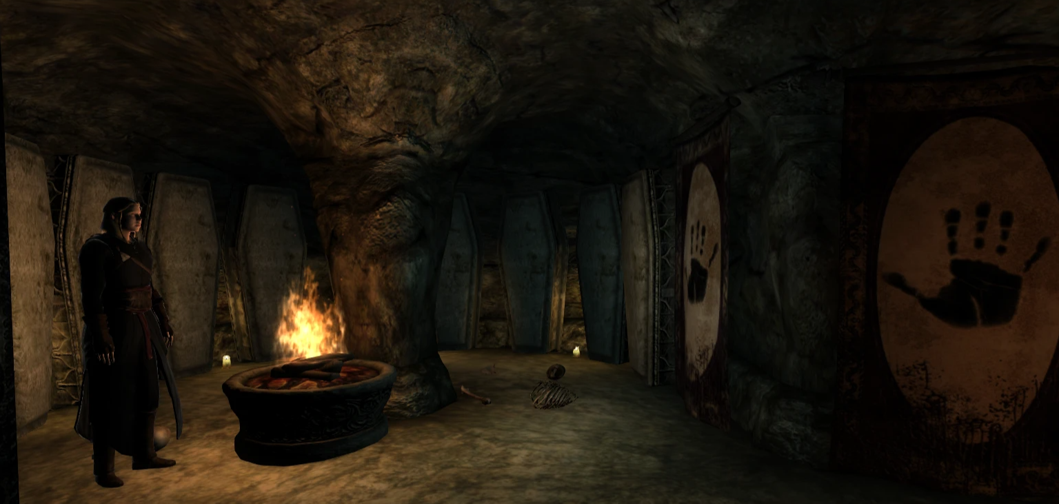 Игорный дом "Агорак" теперь открыт для посетителей! Заходите поиграть в кости, выигрывайте по-крупному, проигрывайте по-крупному, проигрывайте все... Возможно, тогда вам следовало сначала помолиться Счастливой Леди. Ходят слухи, что где-то под городом есть старый склеп Темного братства, но сможете ли вы его найти? Какой религии вы придерживаетесь? На данный момент это просто склеп, там пока ничего не происходит. Ну, есть некое святилище, но больше ничего. Будет продолжено и расширено позже.