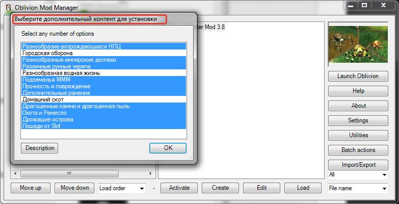 ... если вы желаете установить "Oscuro's_Oblivion_Overhaul" и "Francesco's" - рекомендуется установить их заранее.