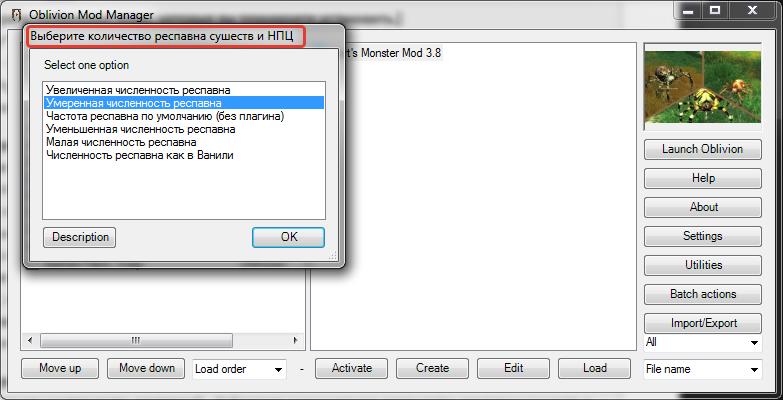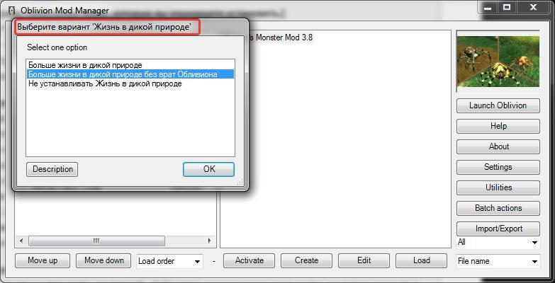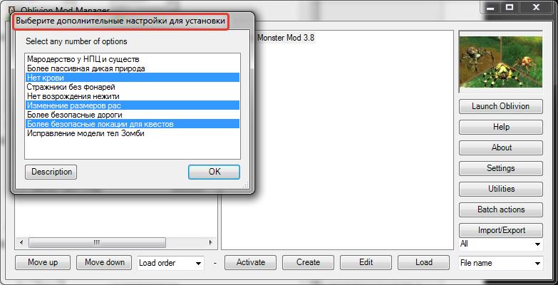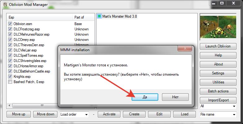 10. В основном меню OMOD появится вновь созданный "OMOD-установщик" Mart's Monster Mod 3.8. Двойной щелчек по нему, начнет процесс установки.