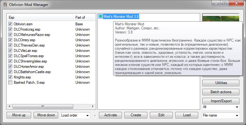 - "Mart's Monster Mod.7z" (архив, содержащий файл Mart's Monster Mod.bsa) и