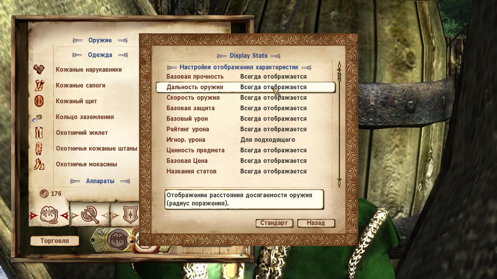 Отображение скрытых характеристик оружия, брони и др., в окне всплывающего меню , при наведении курсора вашей мыши на "элемент" в меню: инвентаря / контейнера / бартера.