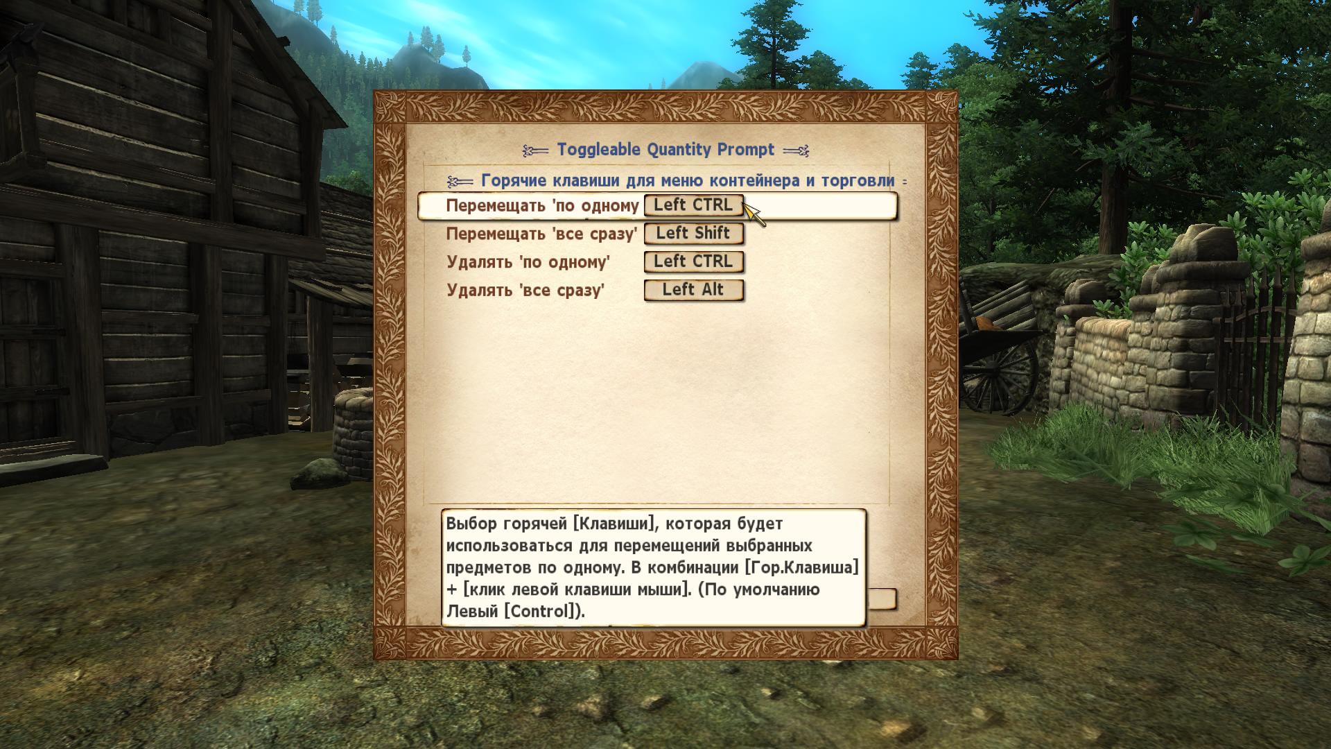При необходимости, настроить файл Toggleable Quantity Prompt.ini (перед первой загрузкой игры). Изменить настройки в последствии, можно используя меню LINK (в процессе игры).