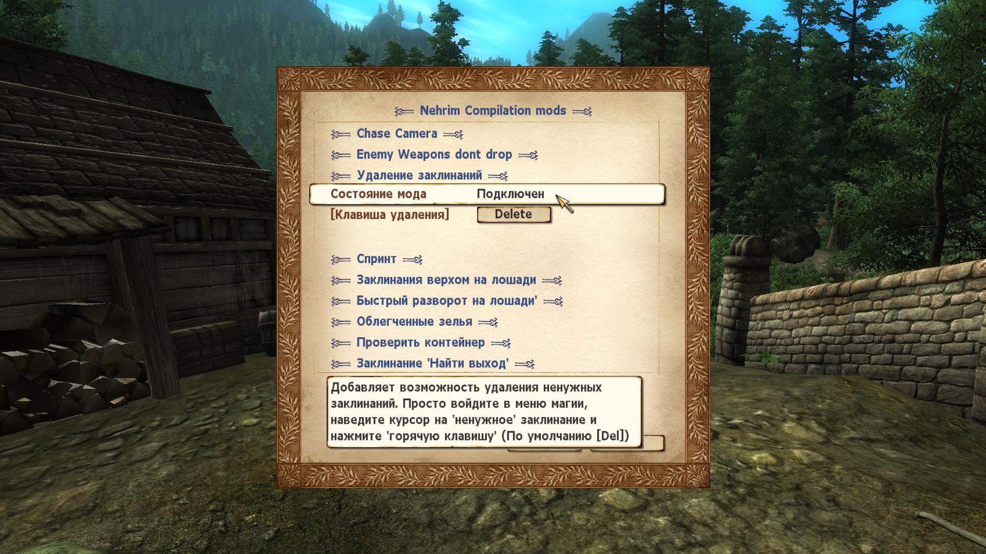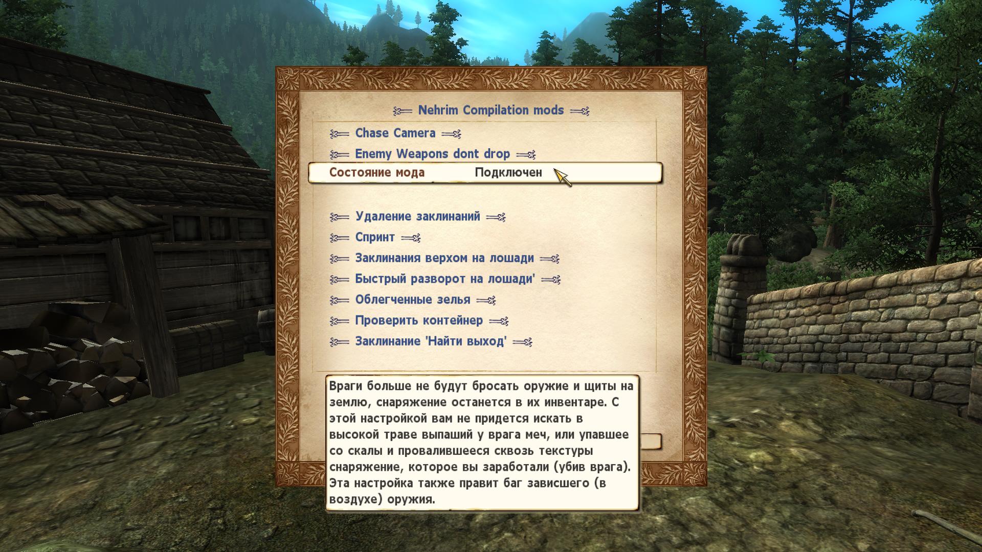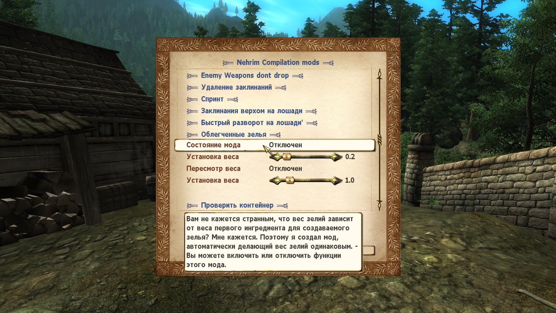 - включение/отключение, а также настройка мини-модов производиться в ini-файле (который находиться в папке с игрой) data/ini/Nehrim_Compilation_mods.ini