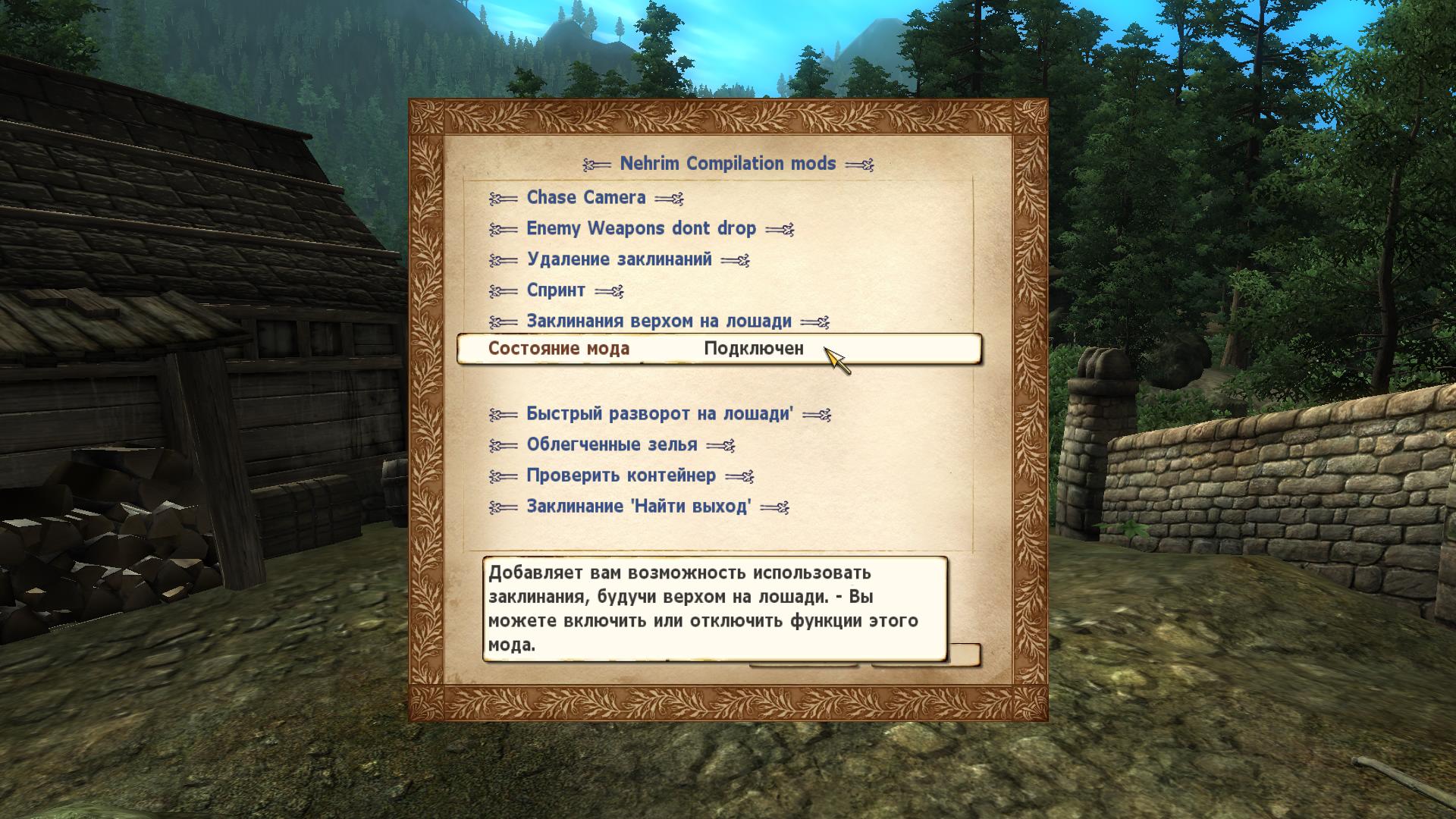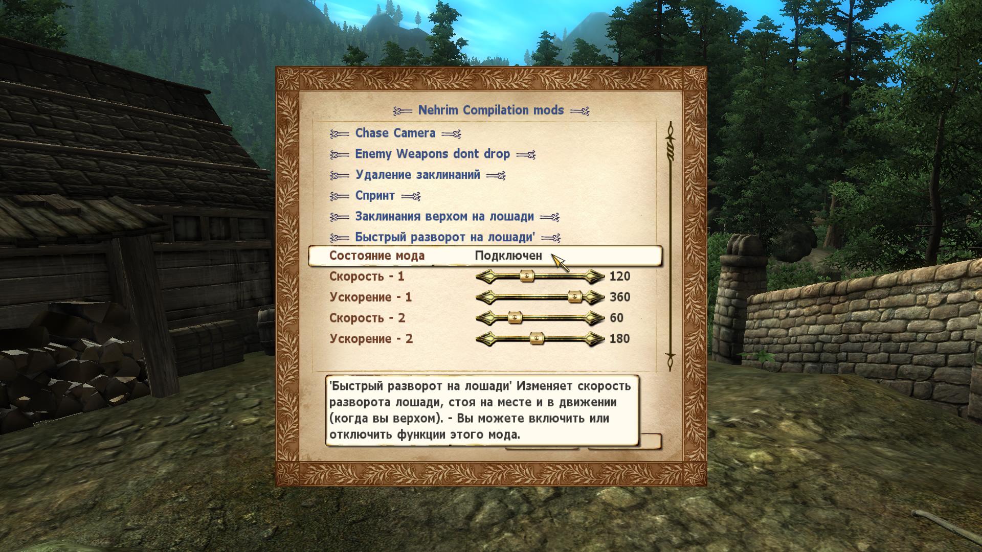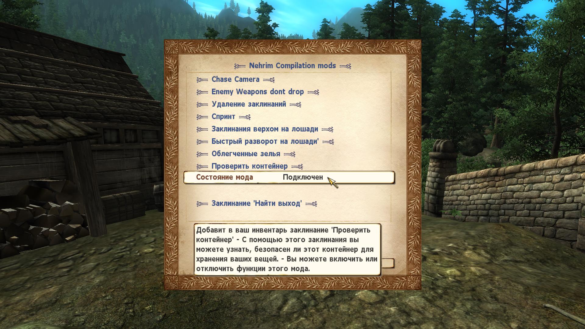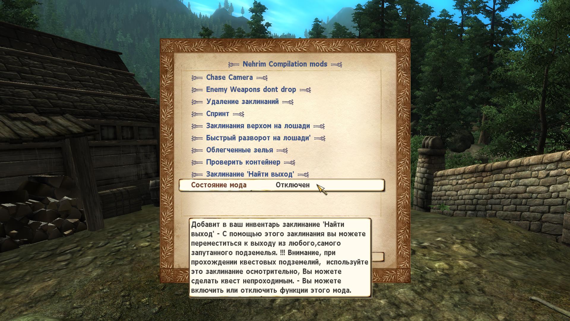 - включение/отключение, а также настройка мини-модов производиться в ini-файле (который находиться в папке с игрой) data/ini/Nehrim_Compilation_mods.ini