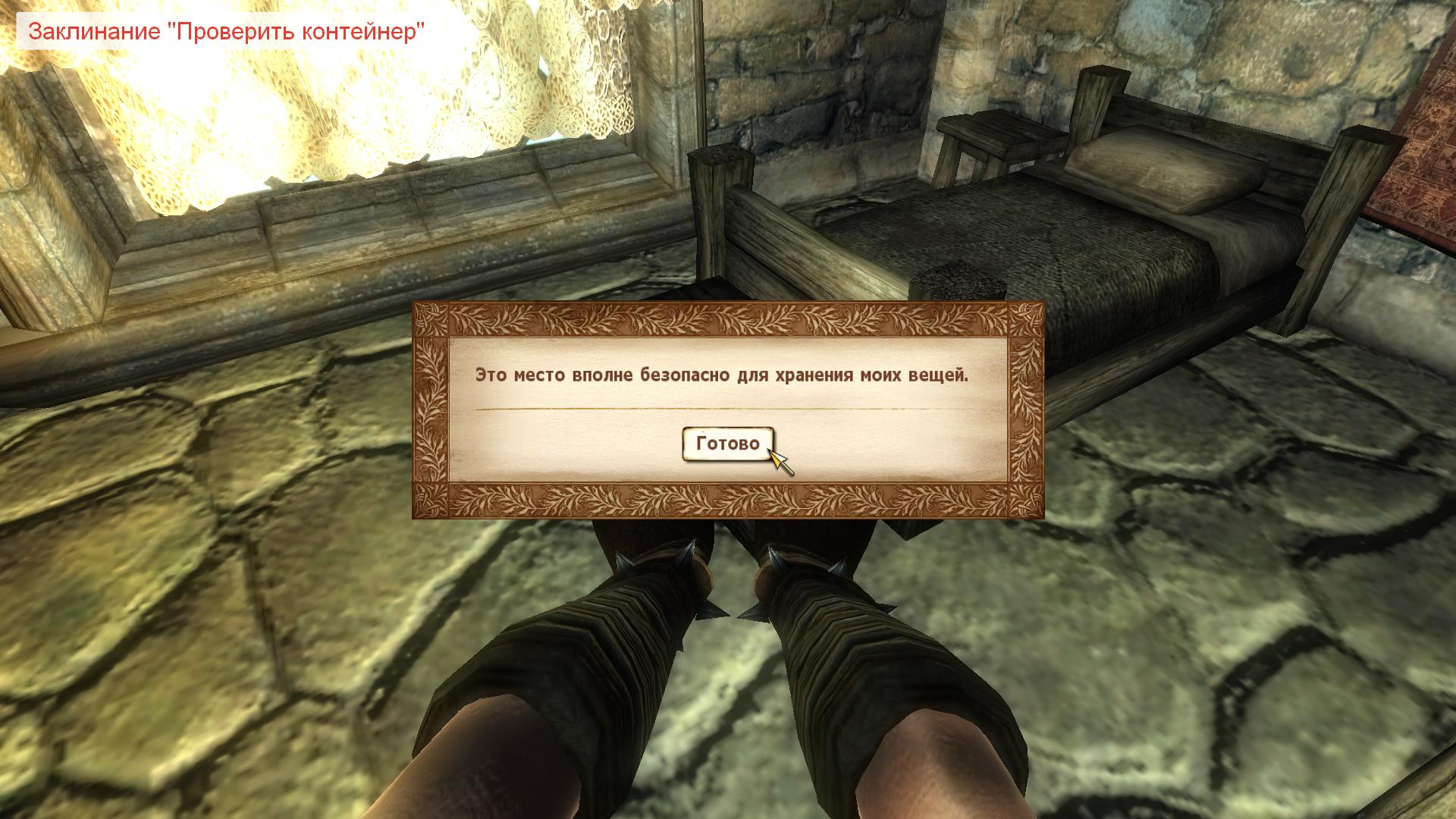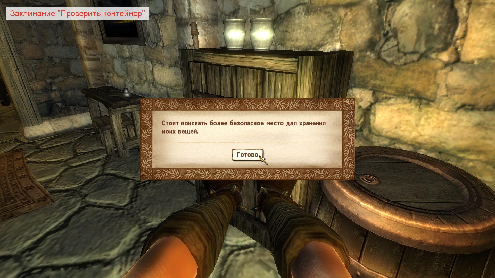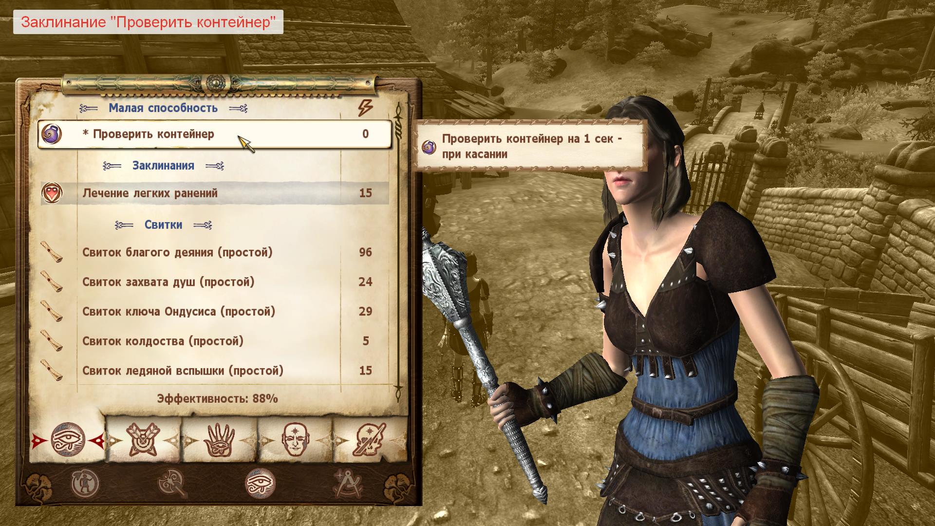 Добавит в ваш инвентарь заклинание 'Проверить контейнер' - С помощью этого заклинания вы можете узнать, безопасен ли этот контейнер для хранения ваших вещей.