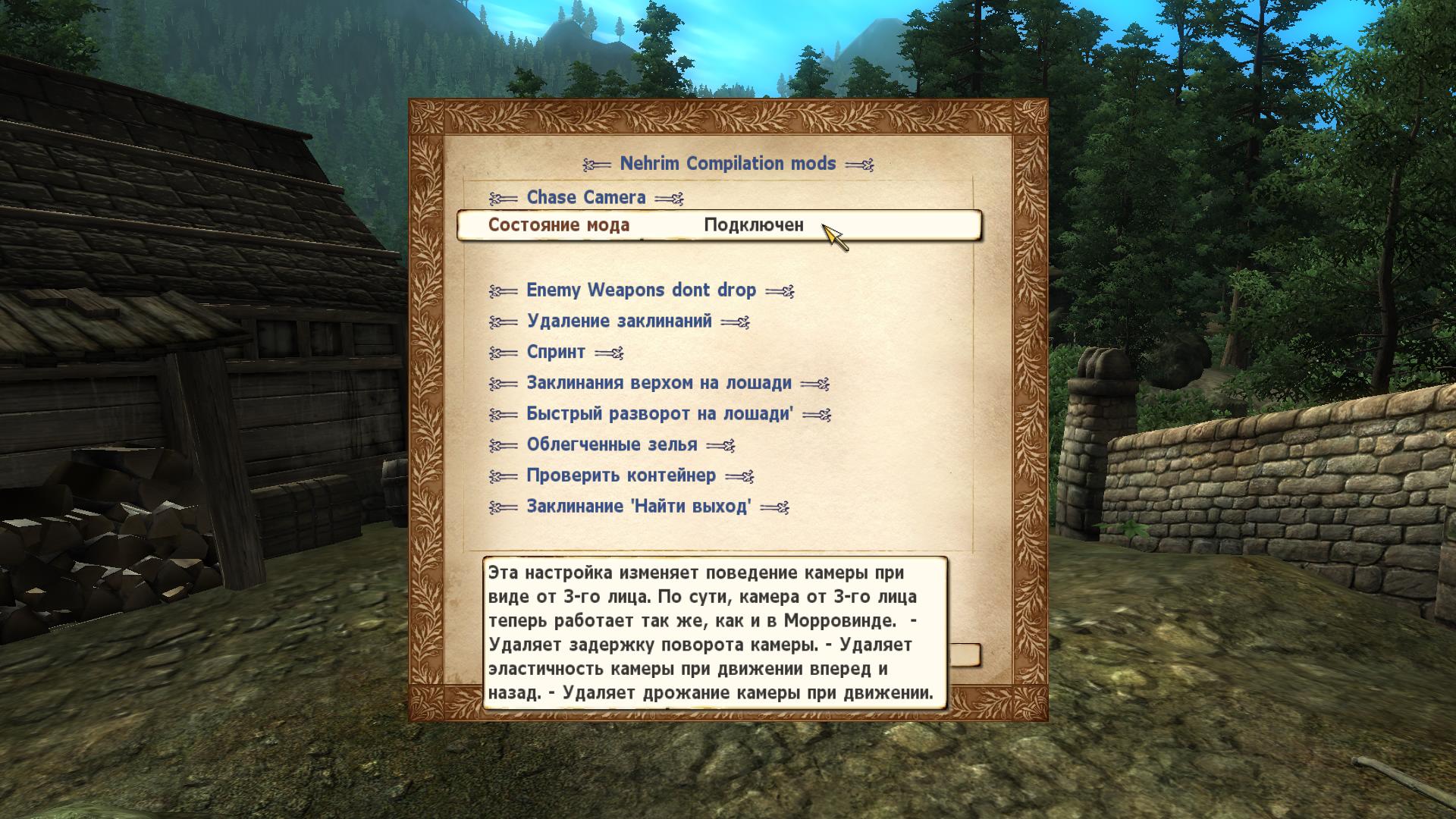 Эта настройка изменяет поведение камеры при виде от 3-го лица. По сути, камера от 3-го лица теперь работает так же, как и в Морровинде. - Удаляет задержку поворота камеры. - Удаляет эластичность камеры при движении вперед и назад. - Удаляет дрожание камеры при движении.