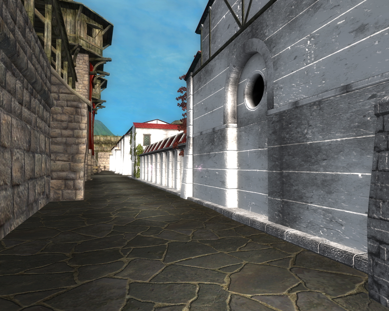 Доки, казармы, 12 дозорных башен, кузницу, конюшни, тюрьму, хранилища, баню и много чего еще.