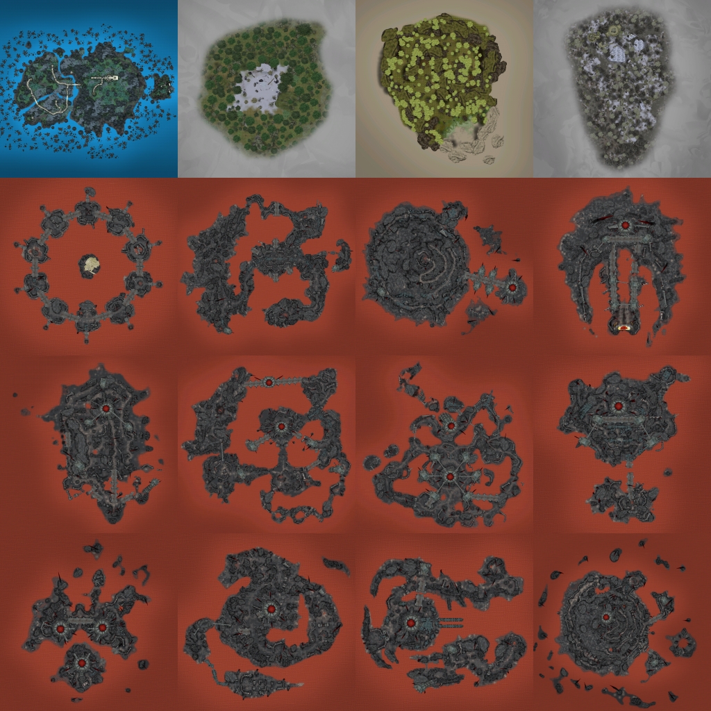 После создания карты Белого Прохода, автор решил довести идею до конца, и сделать карты для всех открытых локаций в игре. Включенные карты: