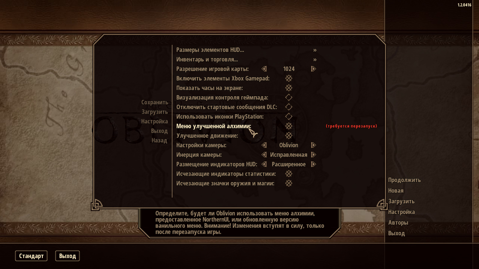 Элегантный современный вид меню NorthernUI (Oblivion Style) повторяет внешний вид официального меню Skyrim, при этом, не выбиваясь из цветовой гаммы ванильной игры Oblivion.