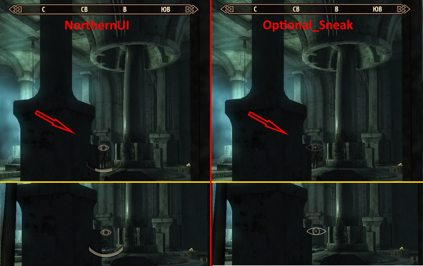 - в архиве NorthUI Optional Sneak.7z находятся файлы, только, измененяющие визуальный стиль в режиме Скрытности/Обнаружения. (подробнее можно увидеть на прилагающихся скриншотах)