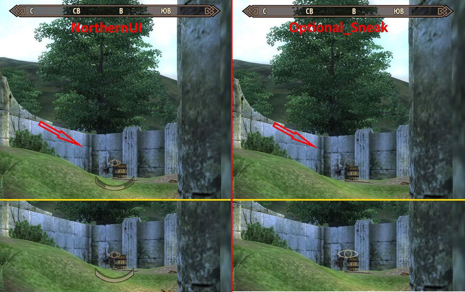 - в архиве NorthUI Optional Sneak+EnemyHealthBar.7z находятся файлы измененяющие визуальный стиль скрытности и отображения здоровья врагов.