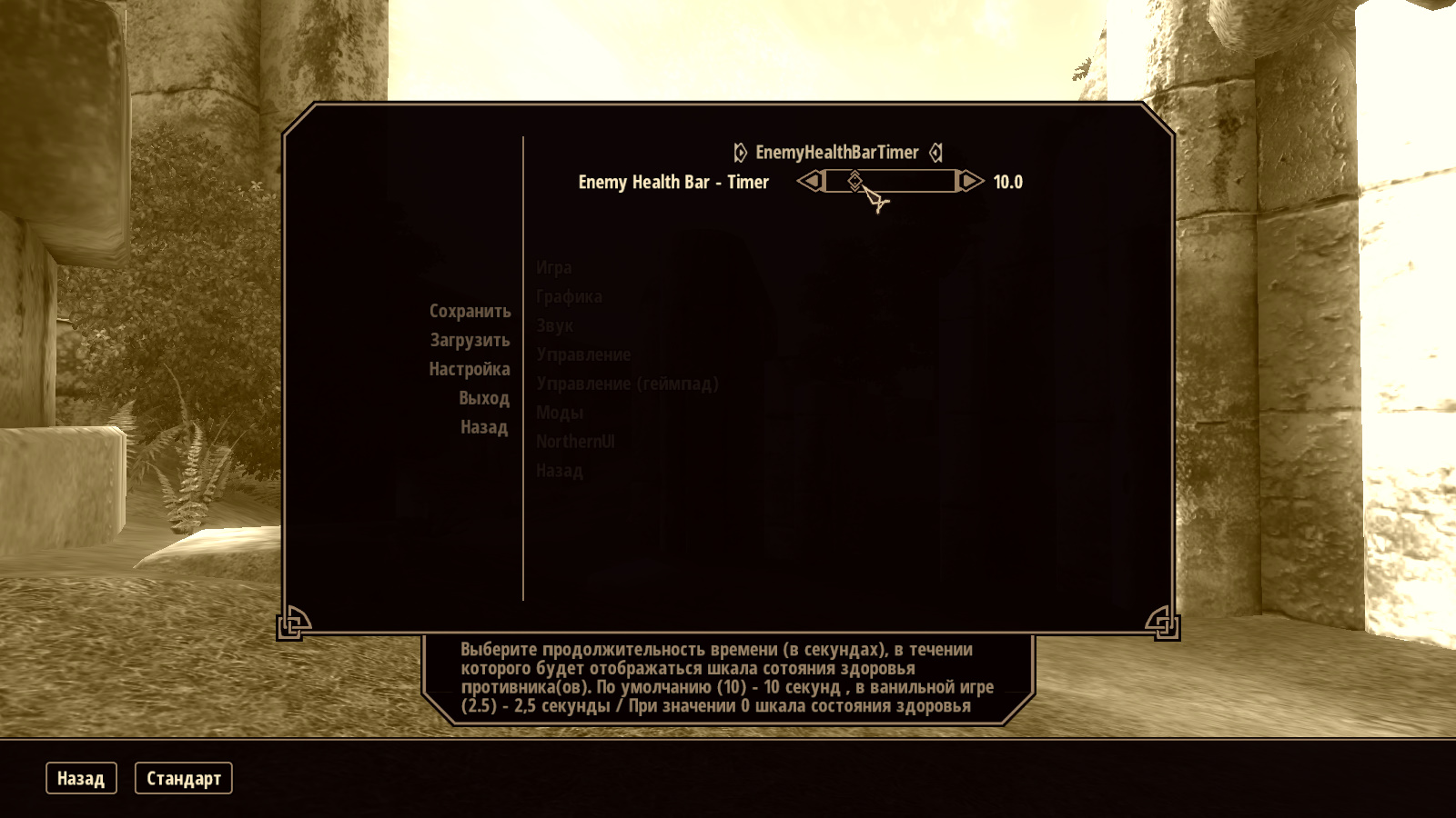 Этот мод позволит вам изменить время отображения индикатора состояния здоровья у атаковнных вами противников.