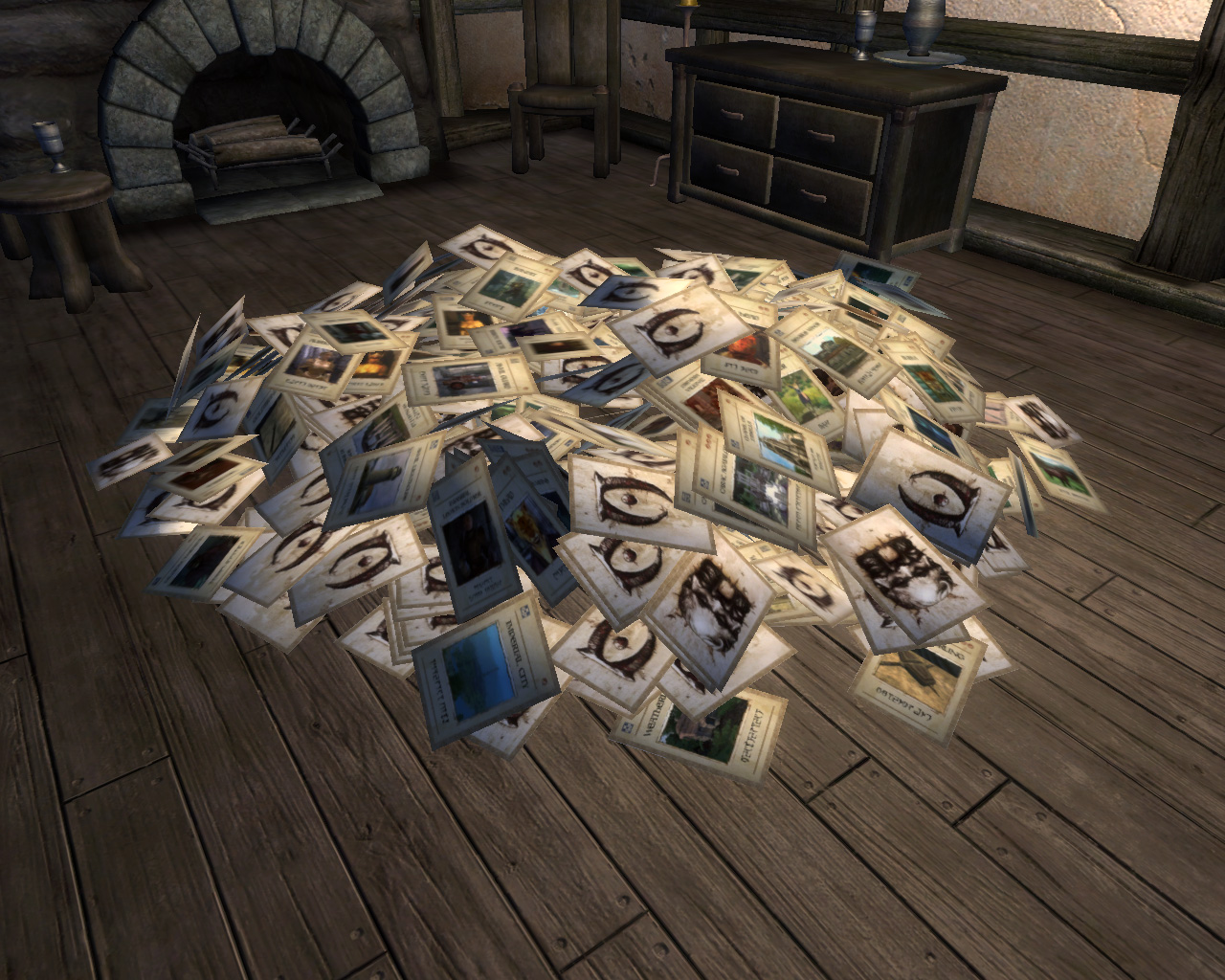 Добавляет на просторы Сиродила впечатляющую коллекцию из трехсот карт. Вы сможете найти их среди другой случайной добычи в сундуках по всей провинции, а также в инвентаре бандитов, мародеров, колдунов и гоблинов.