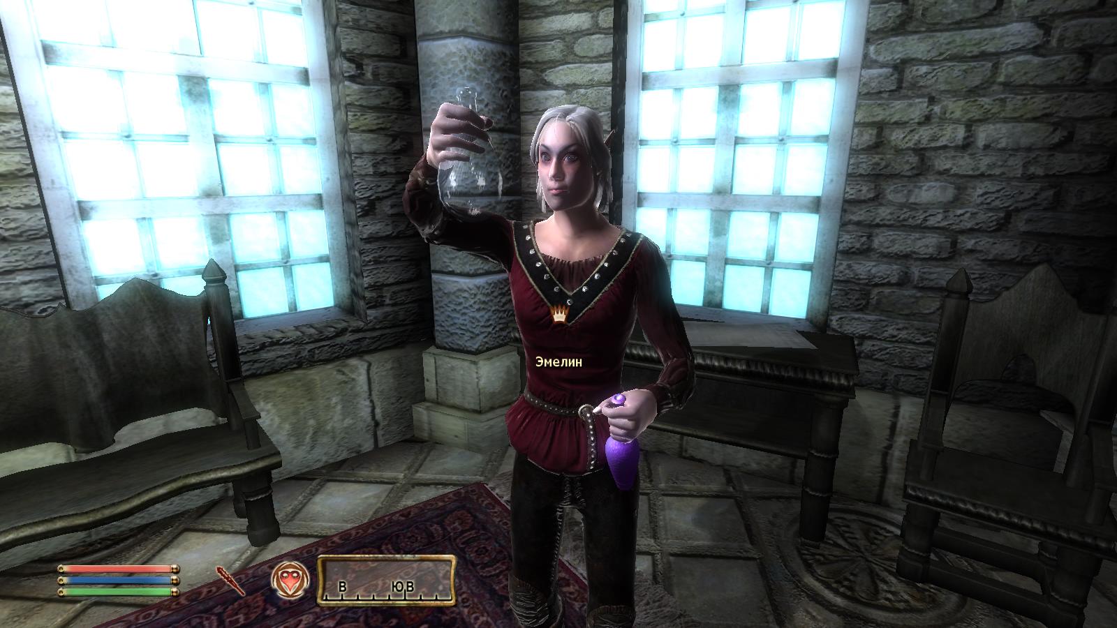 Босмерка Эмелин вернулась из путешествия в свой родной город Анвил. Ее можно встретить в «Имперском гербе». Она так же охотно поболтает с вами и продаст сильные зелья. Если вы мужчина, она может проявить к вам не только дружеский интерес.