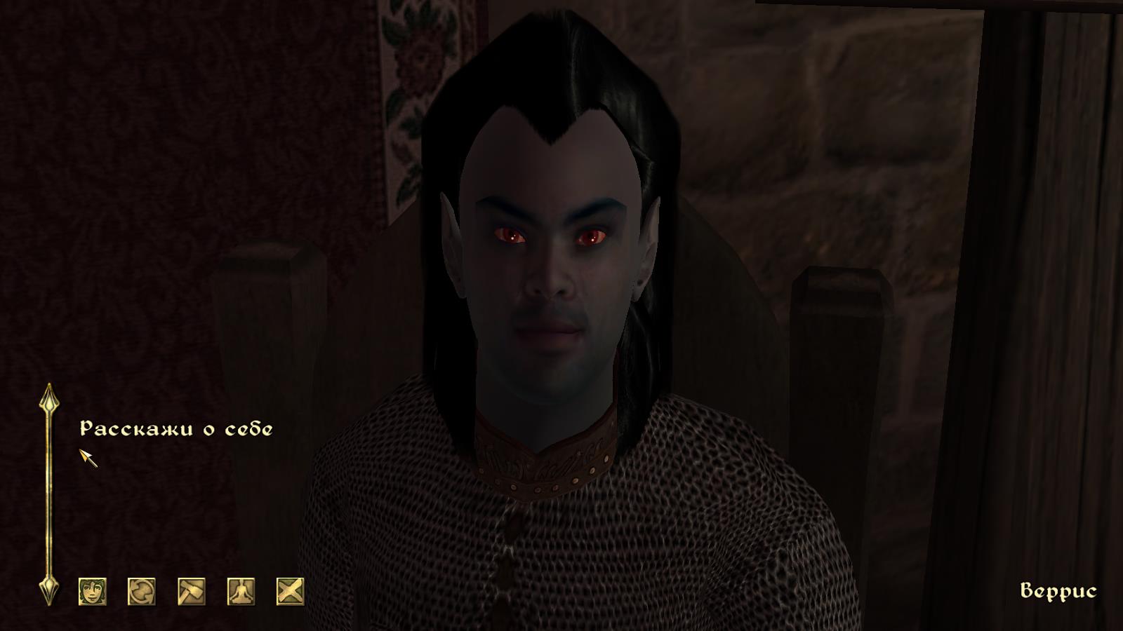 Веррис, данмер, бездельничает в таверне "Имперский мост". Он покинул гильдию бойцов и сейчас подрабатывает оружейником. Может и вас научить. Судя по всему, неравнодушен к женскому полу. Если вы женщина и понравитесь ему, приготовьтесь выслушивать комплименты.