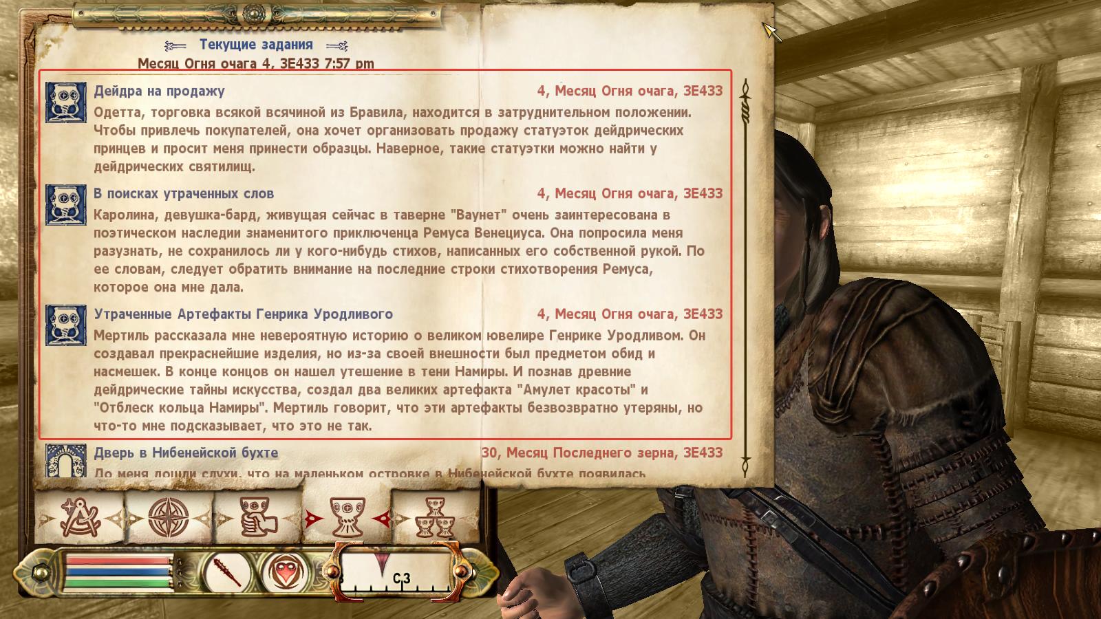 Аргонианин Слышащий-Шепот-Листвы появился в Портовом районе Имперского города, недалеко от вашей хижины. Такое ощущение, что он пришел именно к вам, но что ему нужно от вас, он не говорит. У него есть на продажу несколько заклинаний.