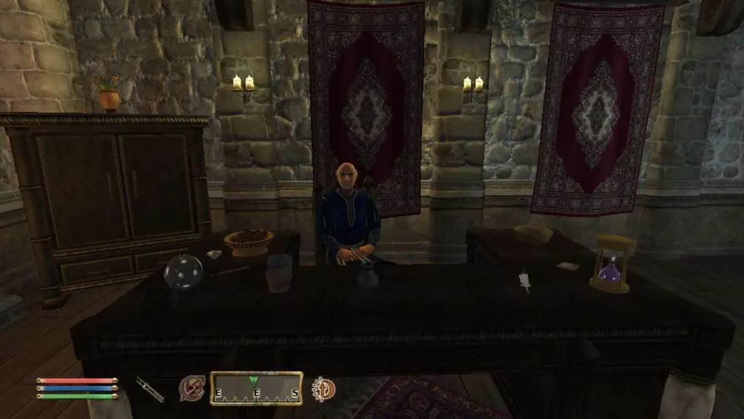 - Управляющий: Следит за всеми вашими игровыми обязательствами перед гильдией бойцов, гильдией магов, темным братством и гильдией воров. Кроме того, он будет передавать сообщения от старых друзей и жителей поселения. Сортирует вещи, одежду и драгоценности. Может выдать набор искателя приключений.