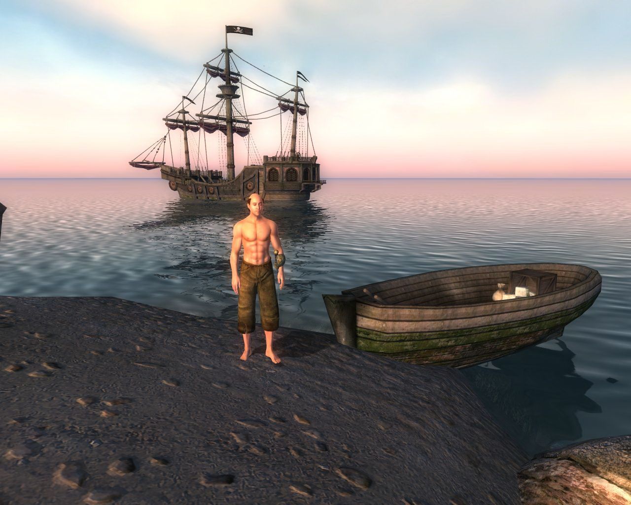 Специально начал новую игру, предварительно установив все интересующие меня плаги, в числе которых был и данный. Как и рекомендовано, не совал туда носа, пока не достиг более-менее высокого уровня - 28-го, пришёл на место крушения - при попытке заговорить с обоими неписями в ответ - многоточие. Наверное, надо освободить из клетки парня, но ключ найти не могу, как и попасть внутрь корабля, как и открыть два сундука, находящихся на берегу. Как быть? Подскажите, пожалуйста.