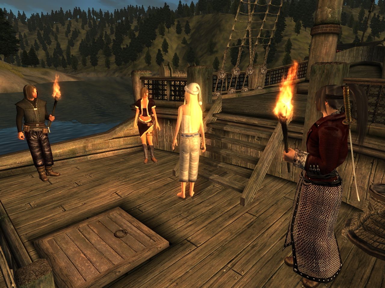 Снова проблема, без помощи не обойтись. После фермы Гандр, или как его там, сказал следовать за ним, но ведёт после одного и того же сейва в разные места. Первый раз завёл далеко в глубь Валенвуда (благо границы мира отключены), пока я не упал с края мира, потом заплыли в Абессинское море с тем же успехом. Так и вспоминается нецензурный детский стишок про Сусанина. В третий раз я заметил, что если с ним поговорить во время пути, он резко меняет направление обратно в сторону Анвила, но после заплыва не может забраться на берег. Там стоит мужик, который, как я понял, должен нас переправить на корабль, но Гандр до него добраться не может, а после моего обращения к лодочнику на корабль мы хоть и попали, но Сусанин с компанией снова спрыгныли в воду и поплыли туда, где раньше был лодочник. Как помочь этому балбесу добраться до перевозчика?!