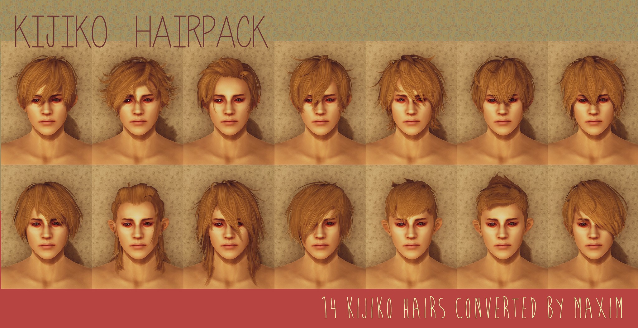 Вам надоели старые мужские причёски? Если надоели, то вам - сюда. Этот мод добавляет целых 14 новых причёсок для персонажей мужского пола. Причёски добавлены всем, кроме рас зверей.
