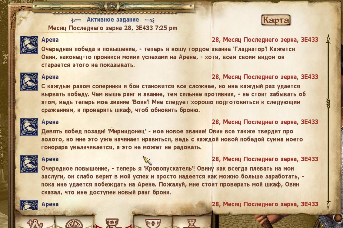 - доработан оригинальный квест арены, - теперь это не просто 2 записи в журнале (меня приняли/я победитель), теперь для каждого ранга добавлена своя стадия квеста и соответствующая запись в журнале.