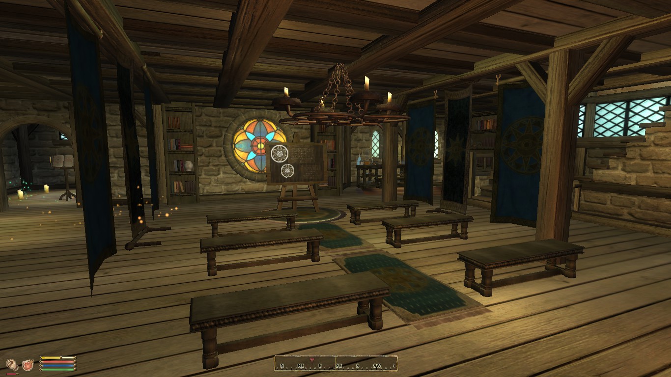 Теперь в каждом отделении (КРОМЕ чейдинхольского и брумского, по причине квестов) есть помещения, подходящие для тренировки, в соответствии со специализацией отделения. В Корроле - круг для призывания, в Скинграде - мишени, в Анвиле - небольшой лазарет, и так далее. Так же добавлено много статичных объектов, контейнеров, предметов и визуальных эффектов, заставляющих отделения Гильдии выглядеть более магическими и похожими на места, в которых происходит обучение. Например, библиотечные полки теперь плотно уставлены книгами. Больше никакого пустого места!