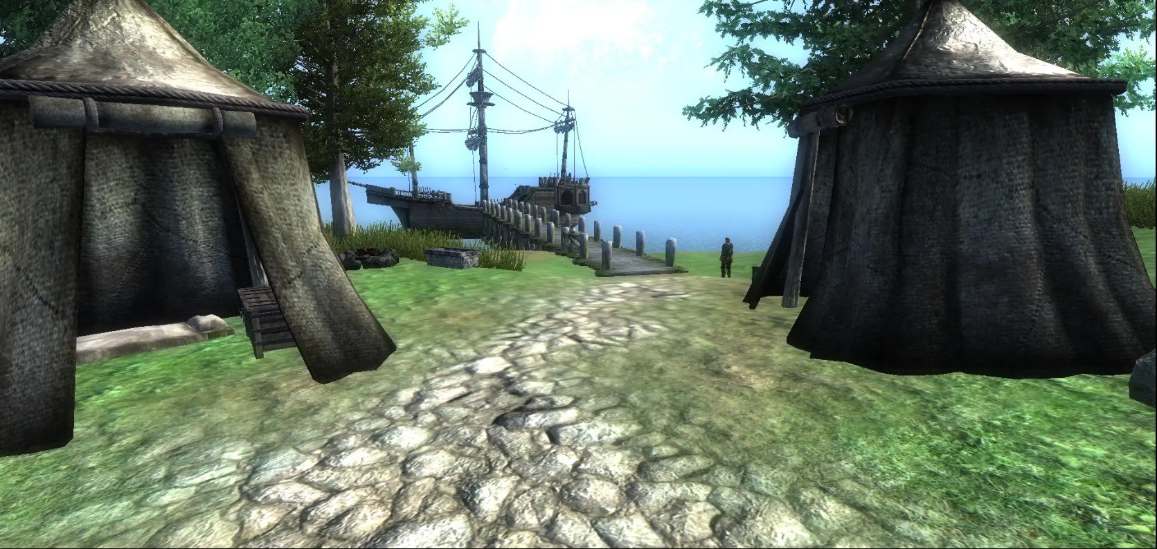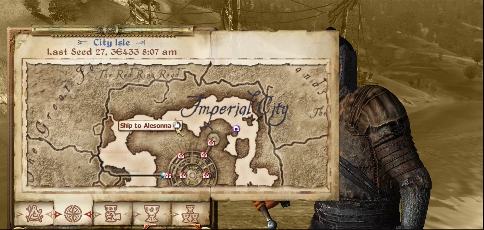 К западу от входа в Имперскую канализацию (откуда вы выходите в начале игры) находится корабль (изображение карты в скринах), который доставит вас на Алесонну, только если вы кликните на дверь в кабину корабля.