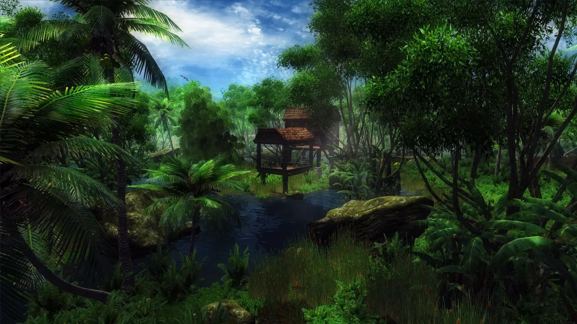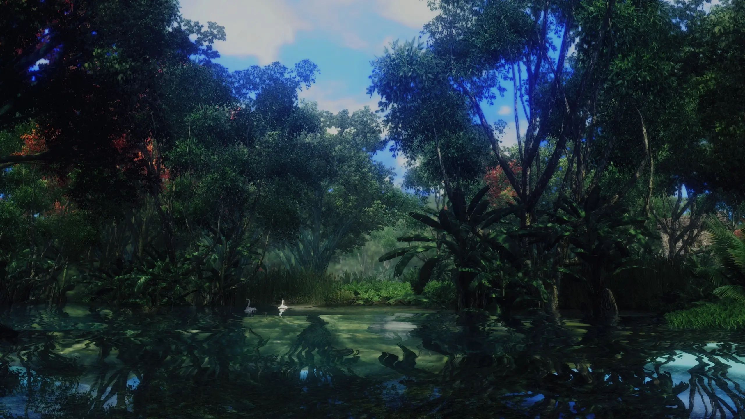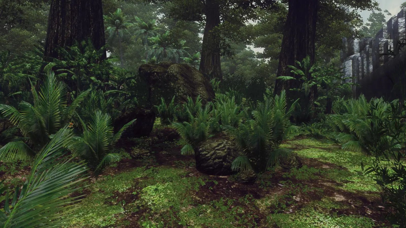 Новые наземные покровы. Банановые деревья на корнях кипарисов. Кипарис заменен на дерево, более похожее на дерево из джунглей.
