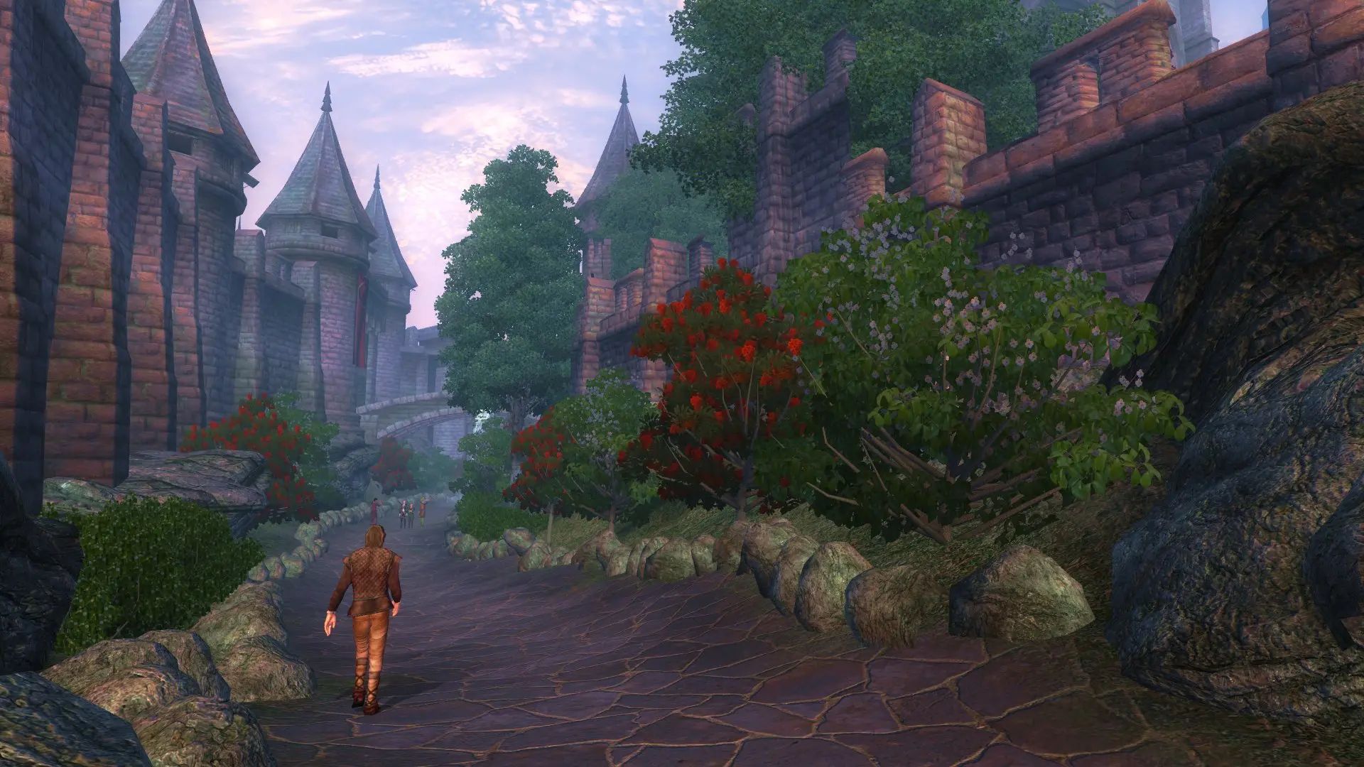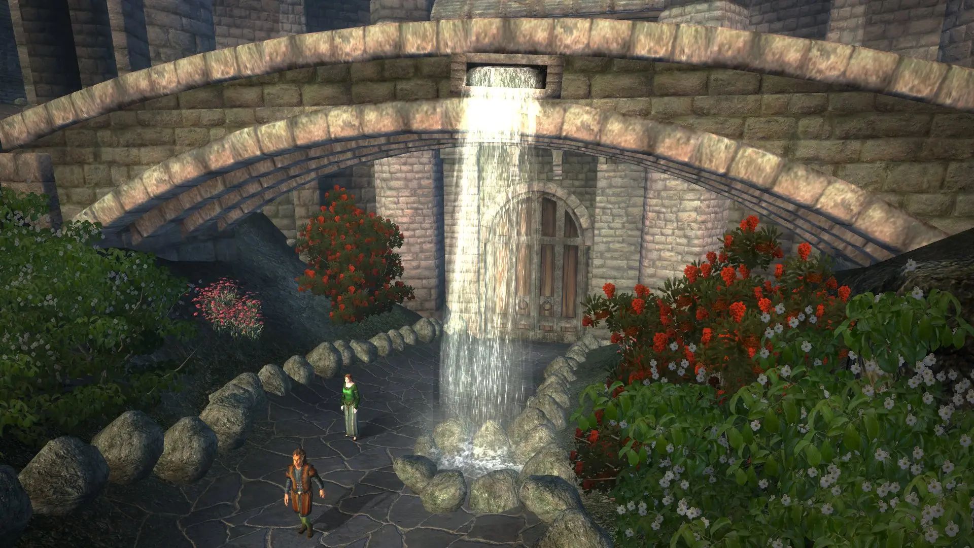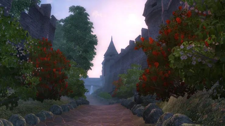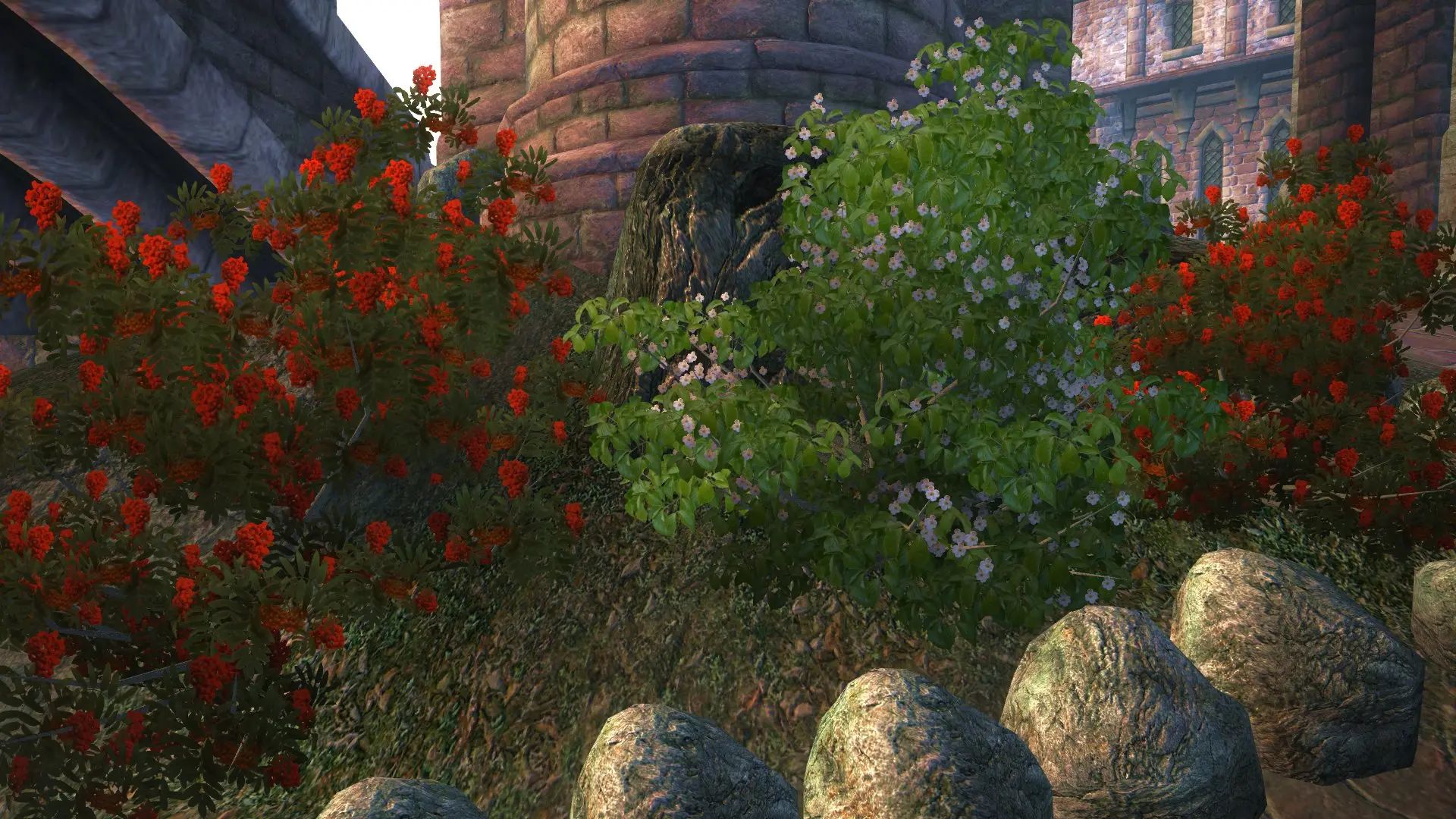 Небольшой ландшафтный мод: теперь нижняя дорога в Скиндраде - это не просто проход через городские двери, это место, где приятно ходить между прекрасными цветочными кустами и успокаивающими фонтанами.