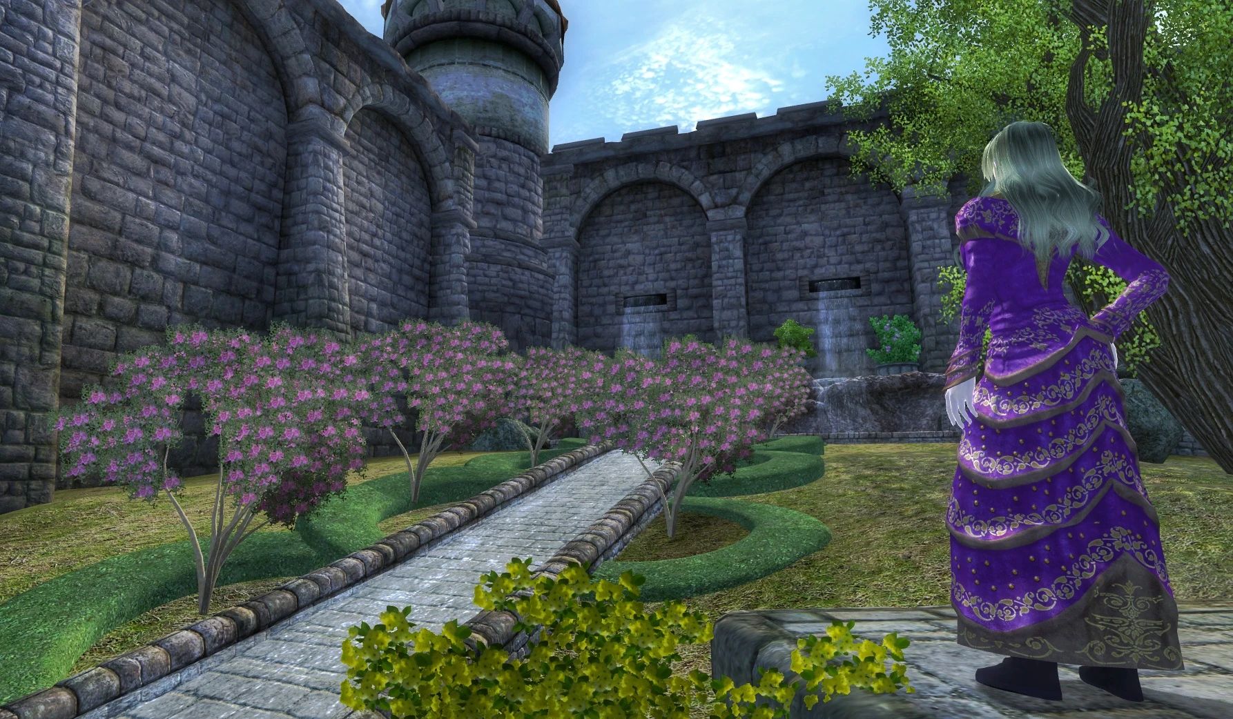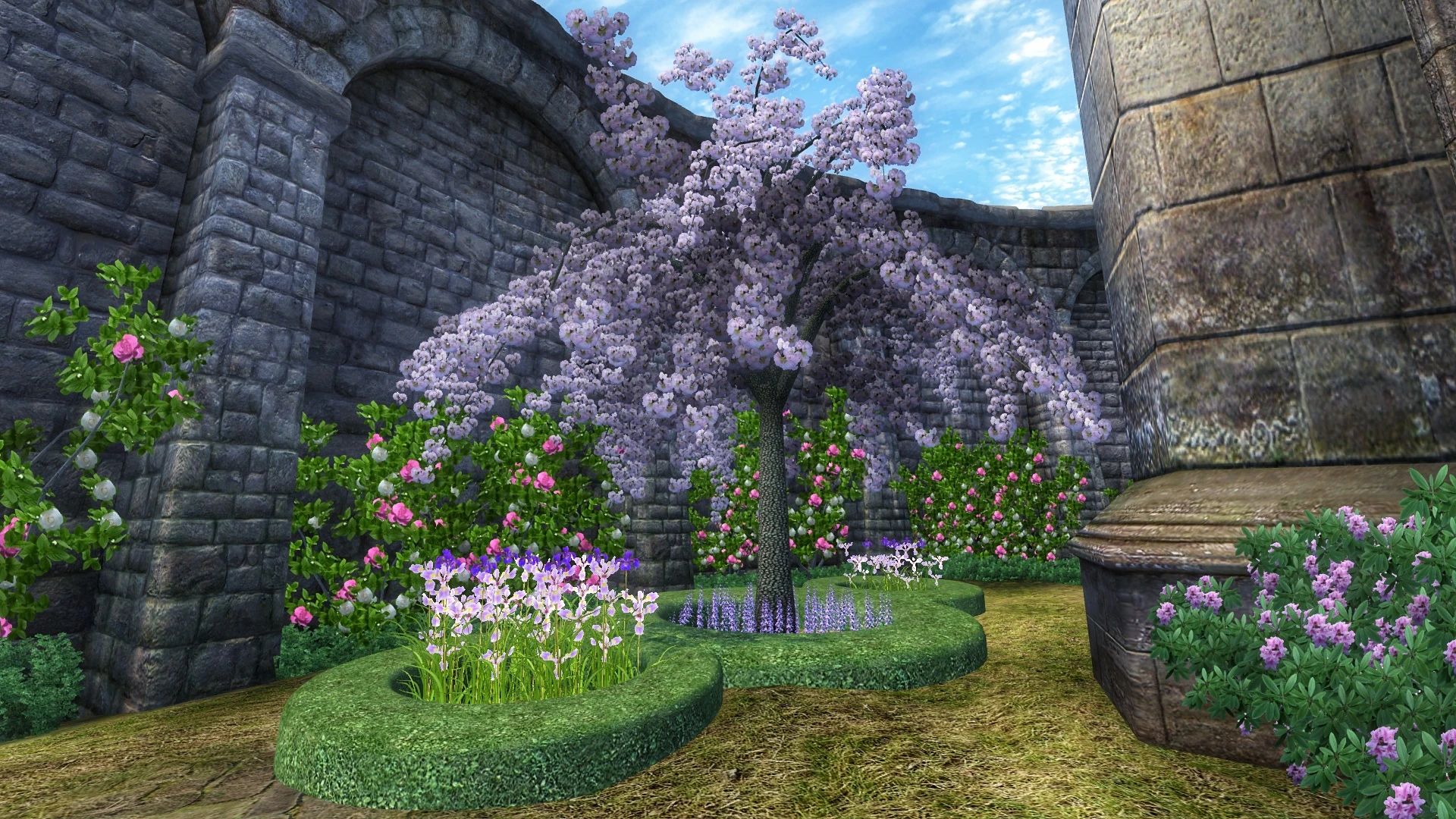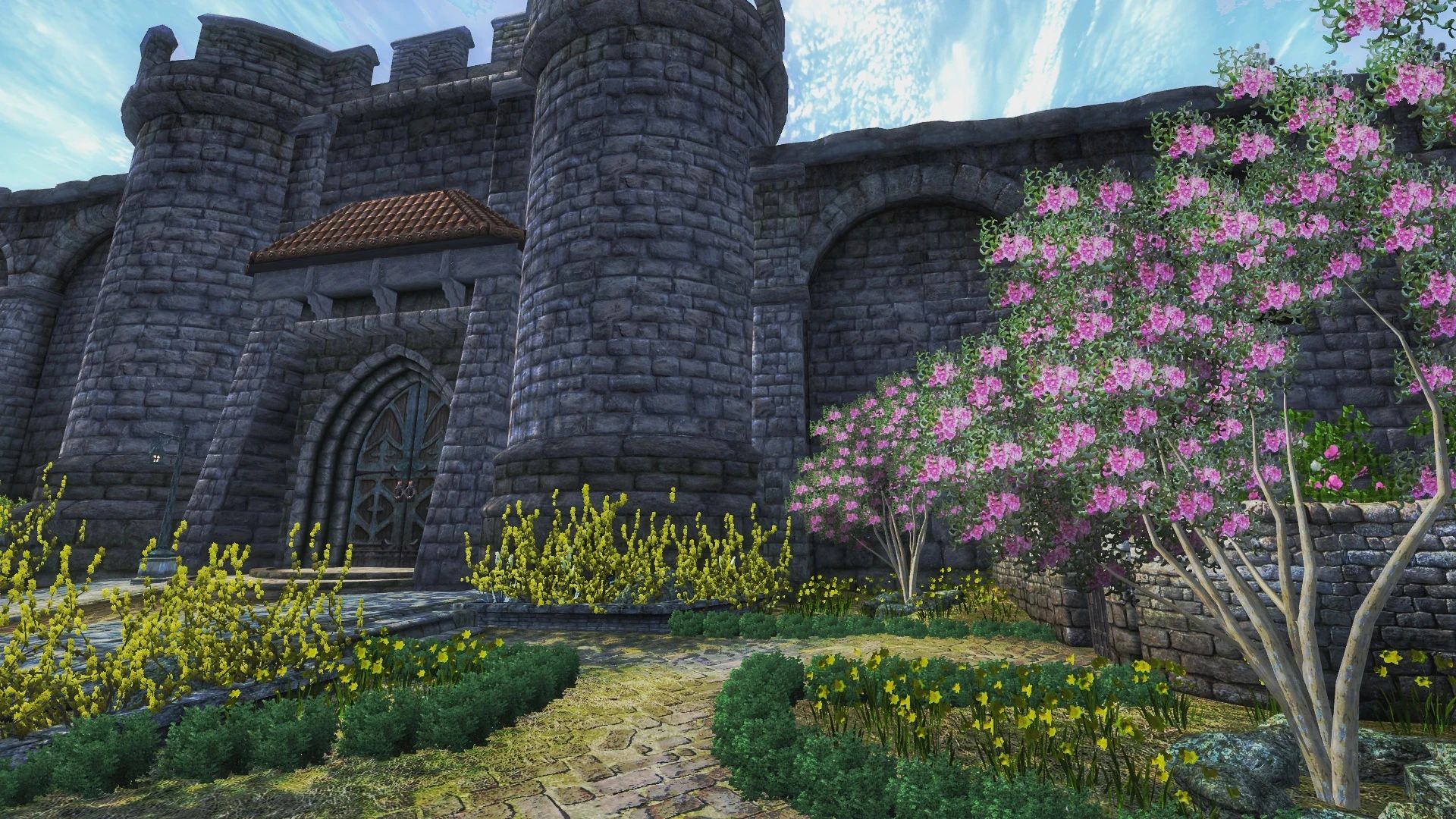 Теперь Анвил действительно достоин стать домом культа Дибеллы, богини красоты и искусств! Я добавила два сада: один принадлежит часовне в честь богини (где в оригинальной игре есть её статуя), другой представляет собой живописный фонтан, соединённый с прудом у статуи Русалки водным каналом, обрамлённым миртовыми деревьями (мирт в древнегреческой мифологии ассоциируется с богиней Афродитой, которая во многом похожа на Дибеллу).