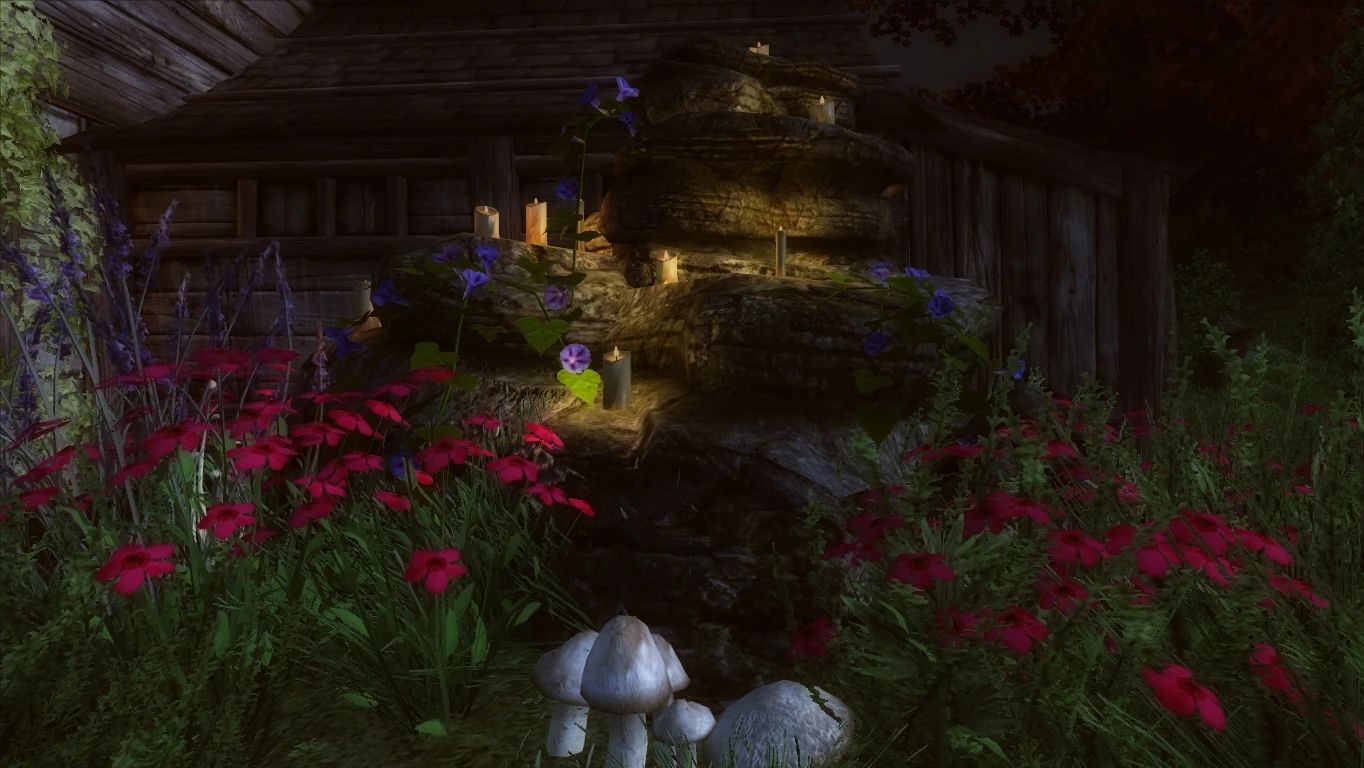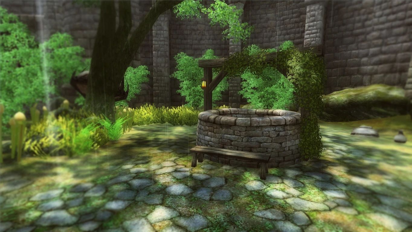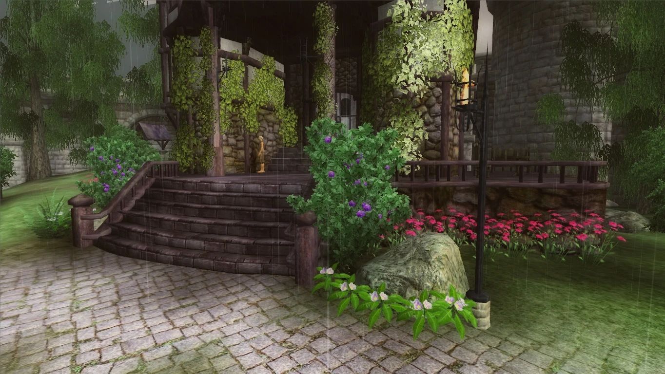 - Различные визуальные эффекты — бабочки, светлячки, искры, огонь в жаровнях и т. д.