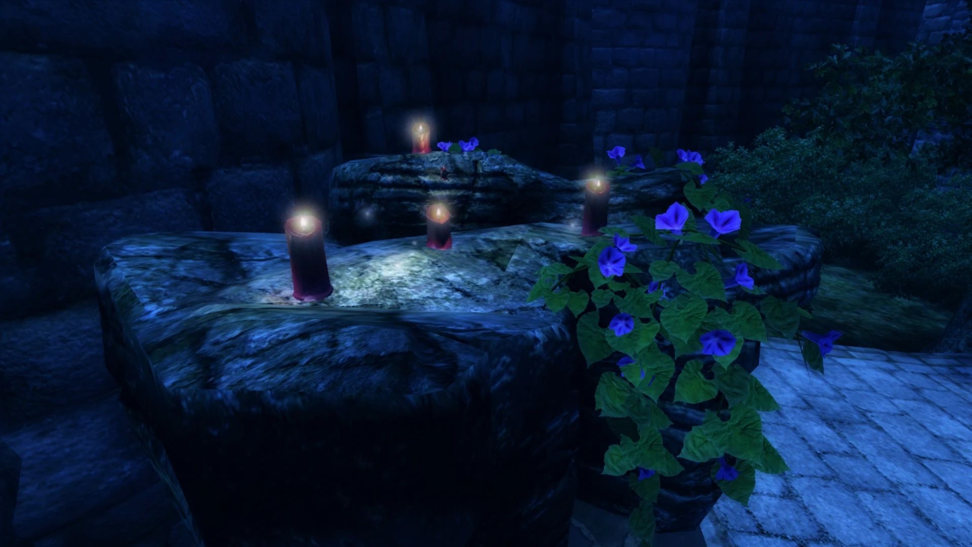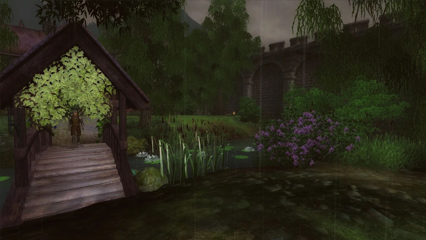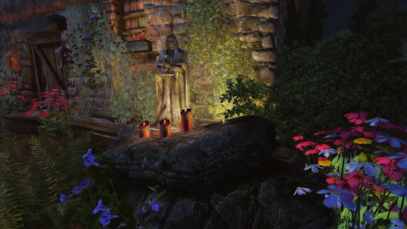 - Различные визуальные эффекты — бабочки, светлячки, искры, огонь в жаровнях и т. д.