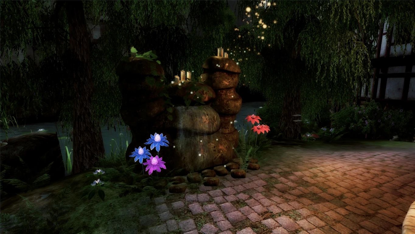- Новые источники света - свечи вокруг фонтанов, динамическая смена светового цикла (свечи загораются ночью).