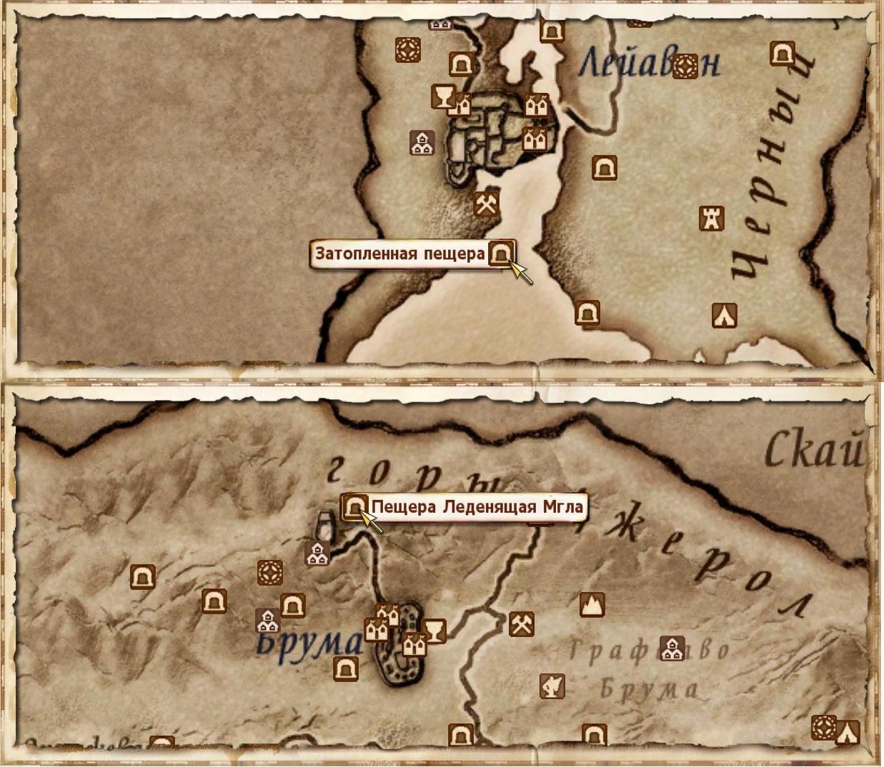 Плагин добавляет два подземелья с нежитью, охраняющей сокровища и новое оружие. Пещера Леденящая Мгла находится около Храма Повелителя Облаков, а вход в Затопленную пещеру лежит к югу от Лейавина.