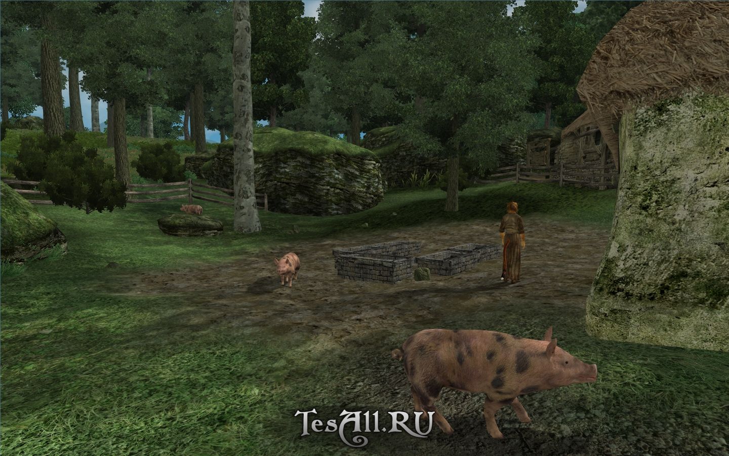 Хотите увидеть, откуда сиродильцы получают свежее мясо и овощи? Конечно, не с тех жалких ферм, которые показаны в игре по дефолту. Лесная деревушка Фарегил, принадлежащая богатею Дарси, исправно растит кур и кроликов, свиней и коров, овощи и зерно. Десяток домиков, таверна да магазин, вот еще рудник золотой, на который хозяин и сделал ставку - казалось бы, живи и радуйся. Что, спрашивается, может случиться в этом райском местечке, окруженном солнечным сосновым бором? Шахтеры приезжают работать, и исправно платят за еду, а золото течет ручьем. Довольны все. Поглядите на толстых поросят и забавных петухов! Боретесь с искушением остаться в этом местечке и обзавестись такими же?