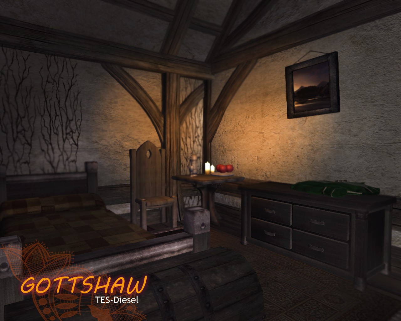 По дороге между Анвилом и Кватчем вам встретится небольшая, но уютная таверна под названием "Готтшо". Дайте усталому коню отдохнуть, а сами тем временем опрокиньте кружечку эля у камина в гостевом зале таверны, или завалитесь на боковую в одной из чистеньких комнат второго этажа всего за десять золотых. Расположенная у самой дороги в живописном месте, с прекрасным видом на море, эта таверна не уступит в удобстве даже грандиозному отелю «Тайбер Септим»…