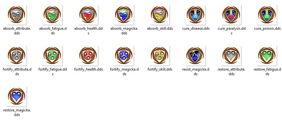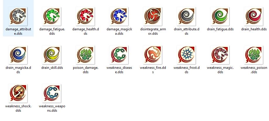 - Diverse Effect Icons OBSE (Разнообразные иконки эффектов) – Это то, что я теперь считаю лучшими значками, используйте этот мод. Не используйте версию, отличную от OBSE, так как она слишком старая и несовместима с последней версией SM.