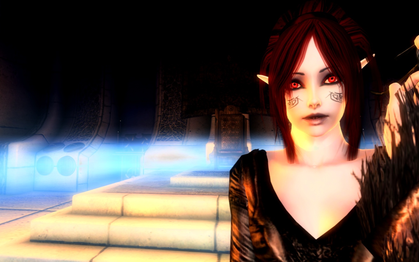 Resident, подтверждаю. Я установил рассу в игру но ничего похожего на скринах не вышло. Какой то эльф с причёсками панка получается. Тату на щеках тоже нет. А главное на скринах тщательно замазывают шейный шов.