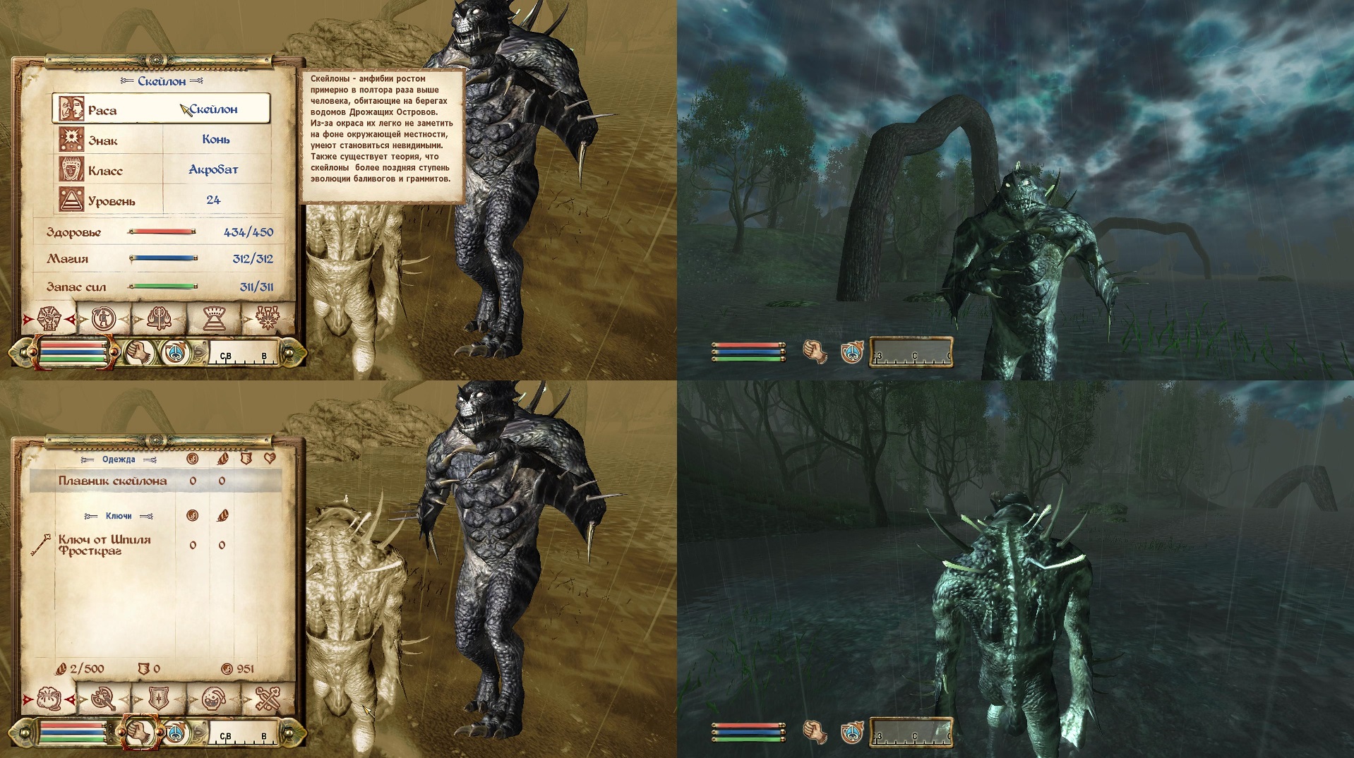 Добавляет в игру 4 новых расы с анимациями. Это расы: лича, скейлона, зомби и дэйдрота, этот мод совместим с модом альтернативное начало